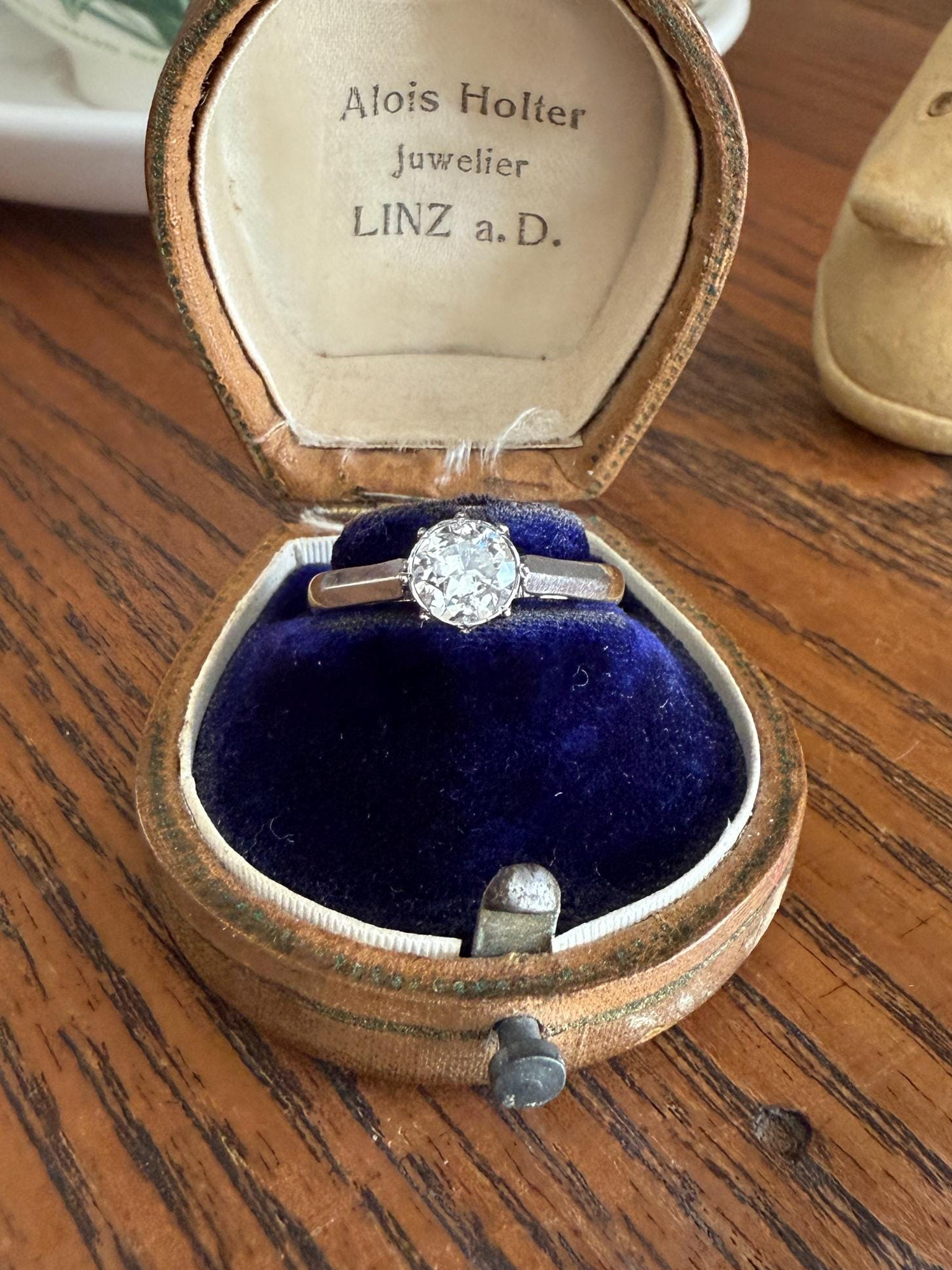 The piece is priced accordingly with these things in mind, as it is listed for quite a bit less than some of my other antique solitaires have sold for. The stone is bright and sparkly and does not read warm. The shank and setting are sturdy.