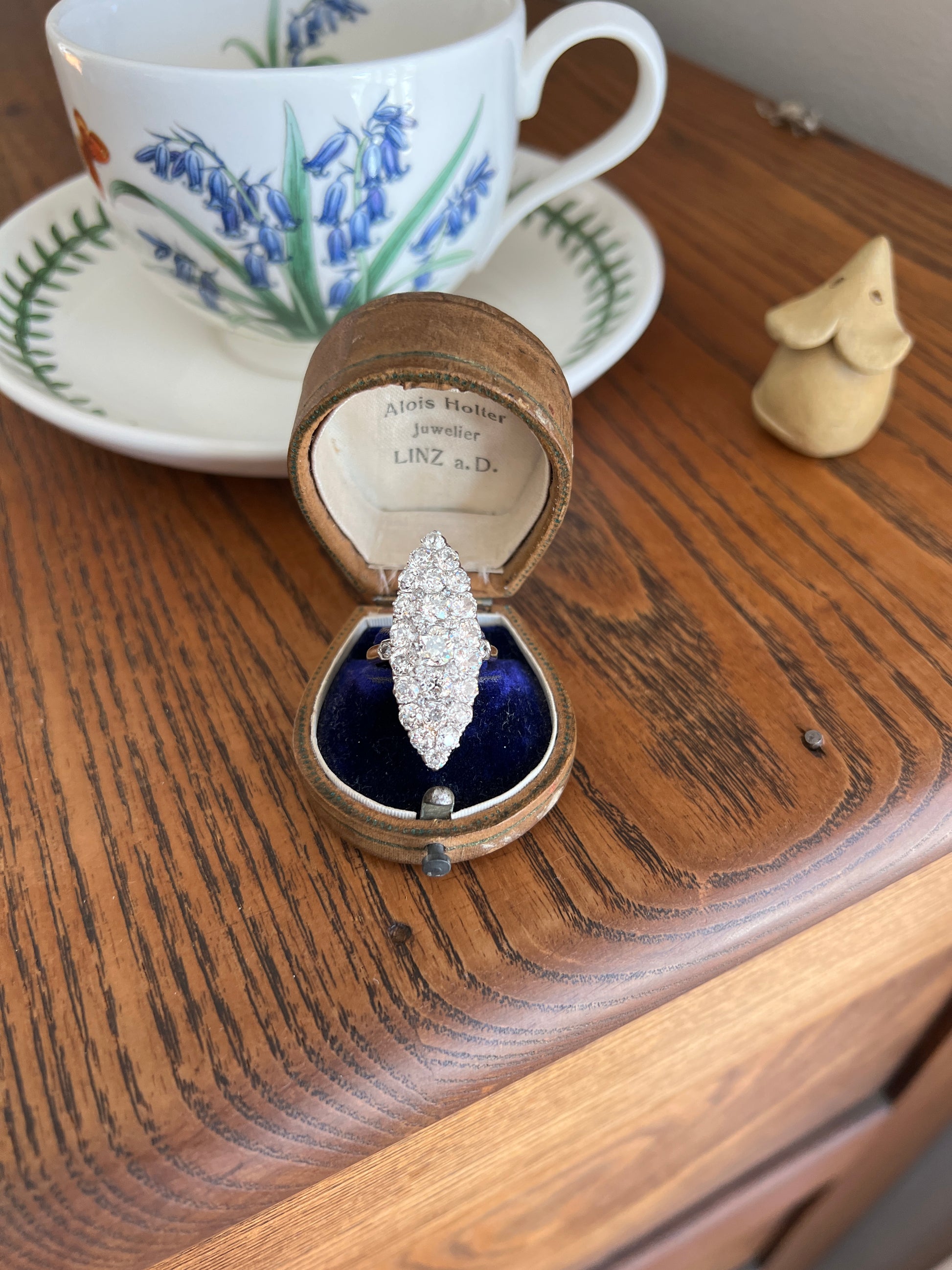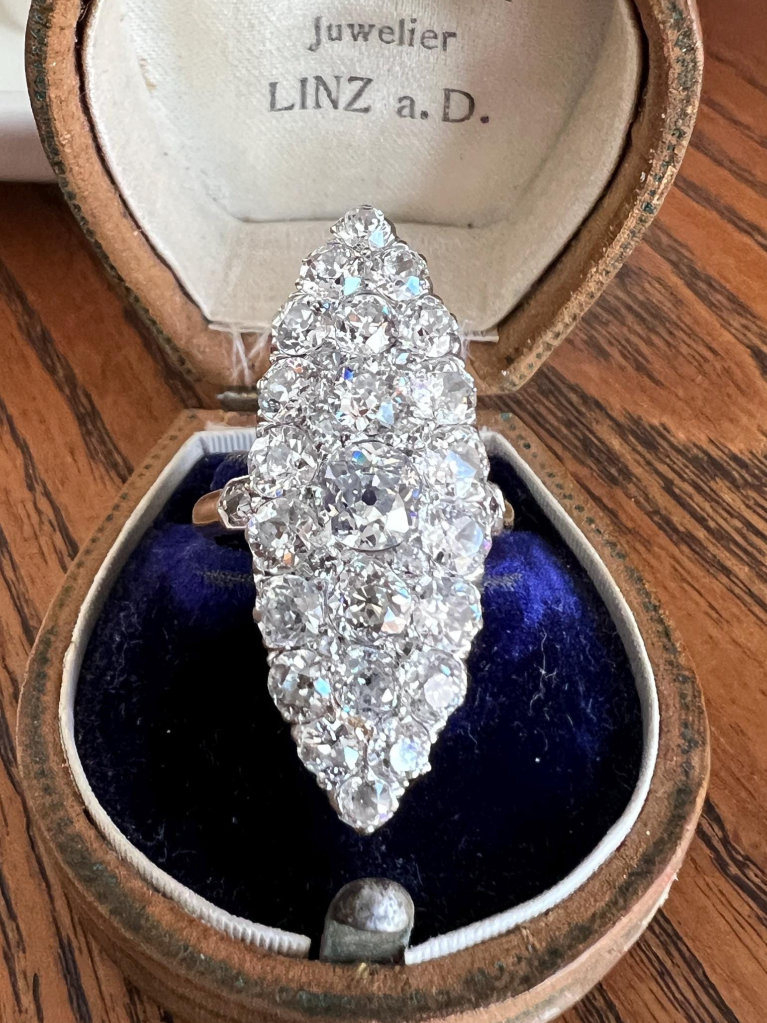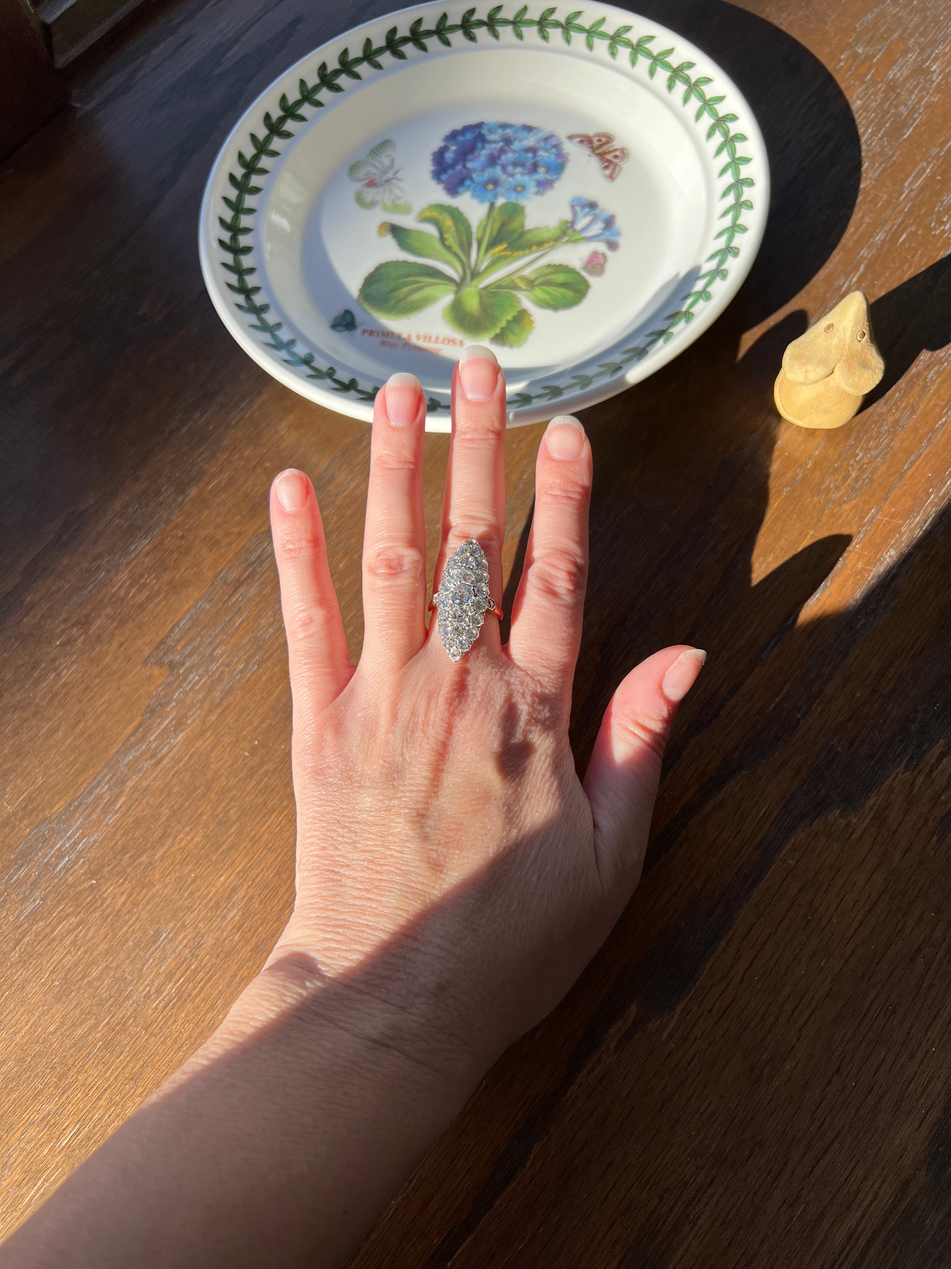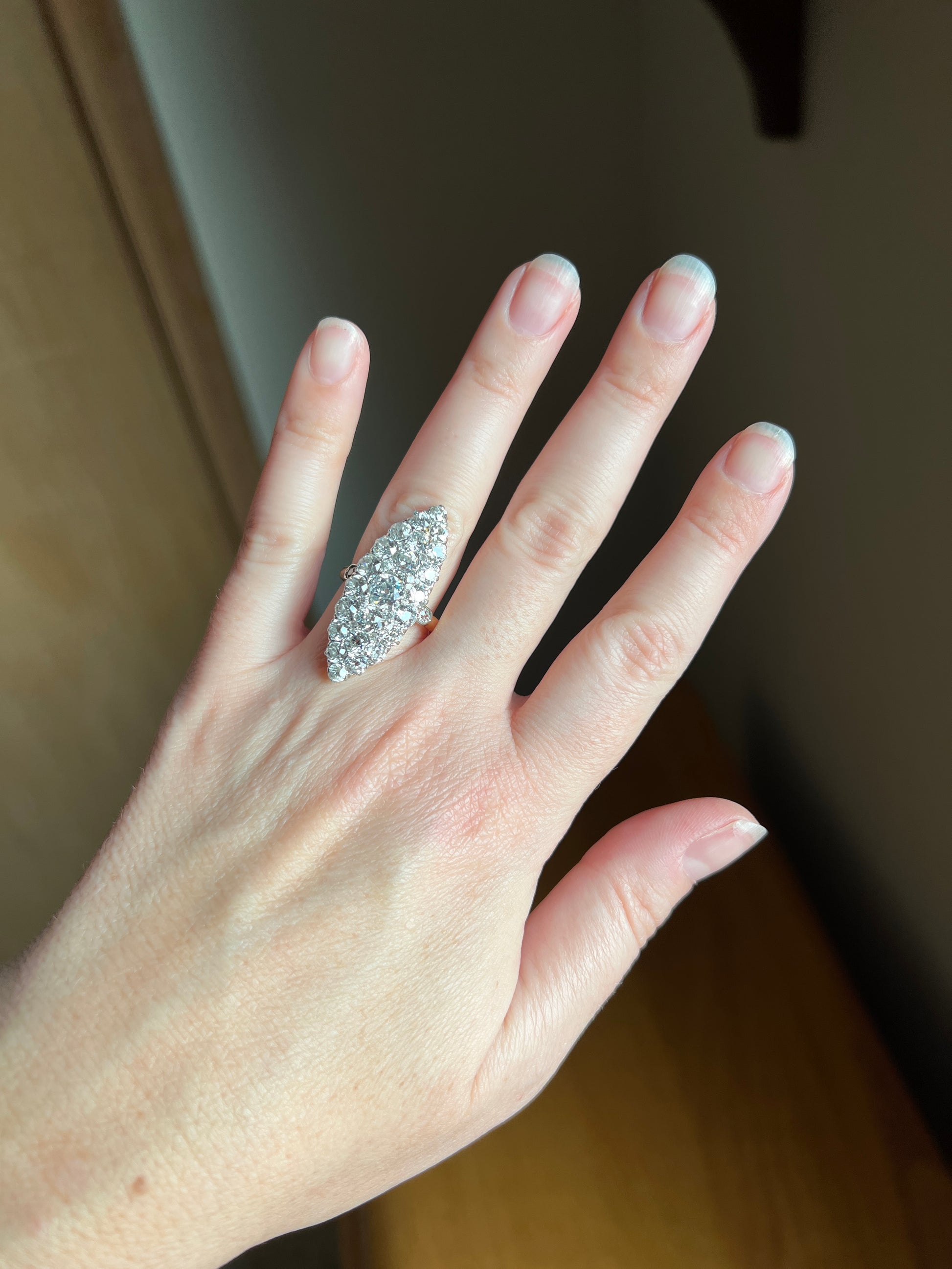 ANTIQUE 5.5 Carat 33 Old Mine Cut DIAMOND Navette XL Cluster Ring 18k Gold Platinum French Belle Epoque