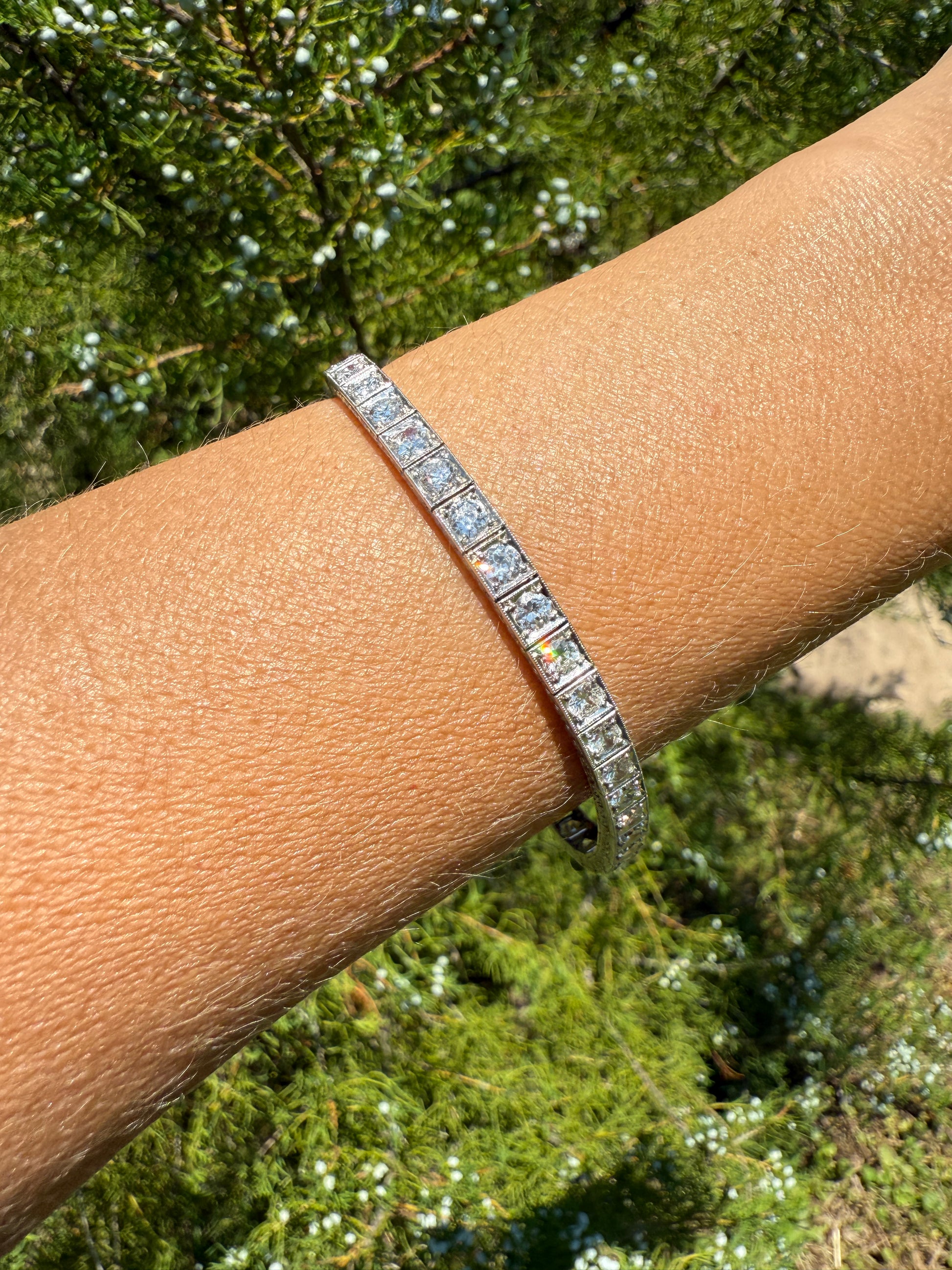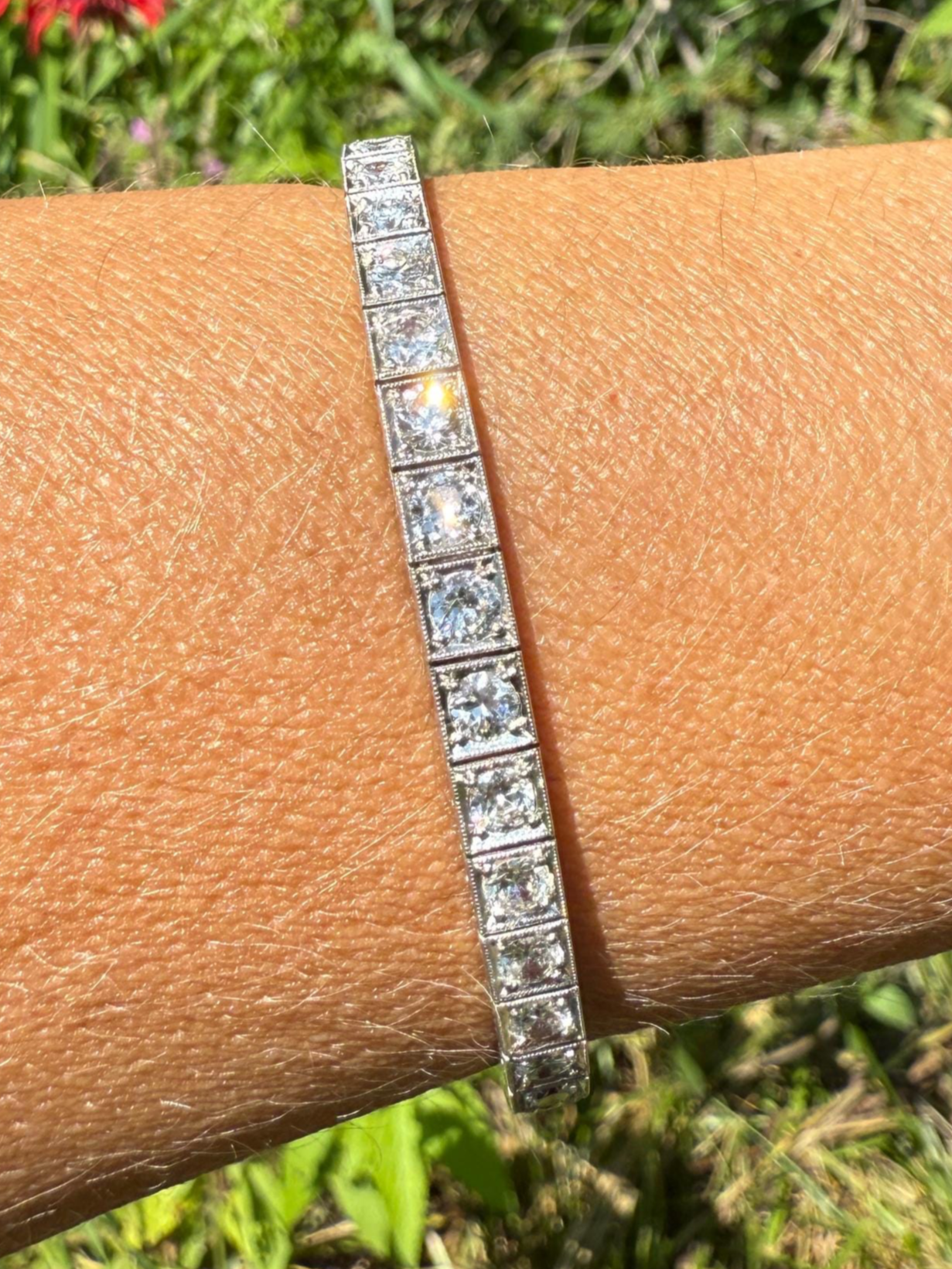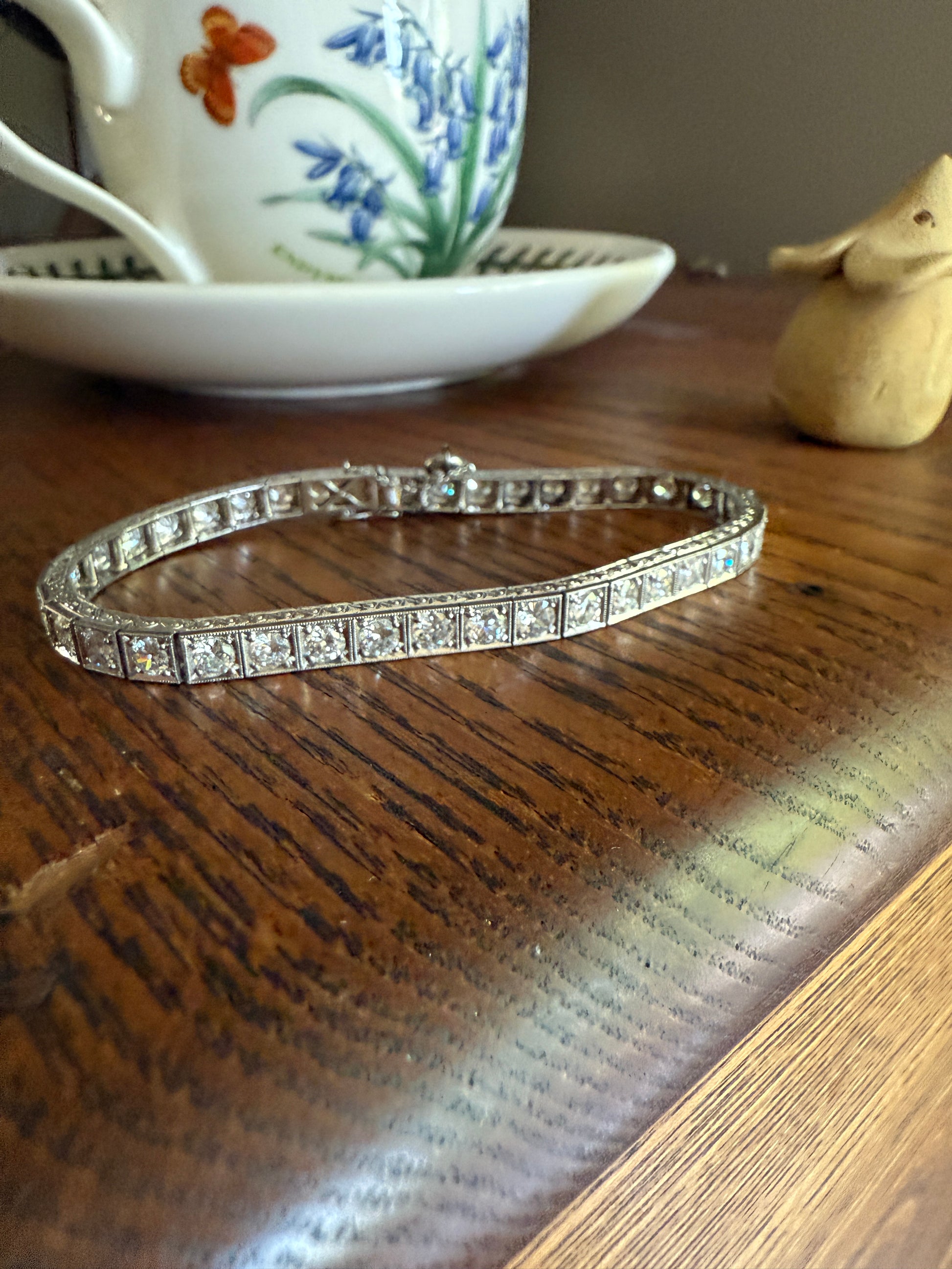 Art Deco 6.25 CARAT 39 Transitional Cut DIAMOND Line Riviera Tennis Bracelet Platinum French Vintage Eternity Square Riviere