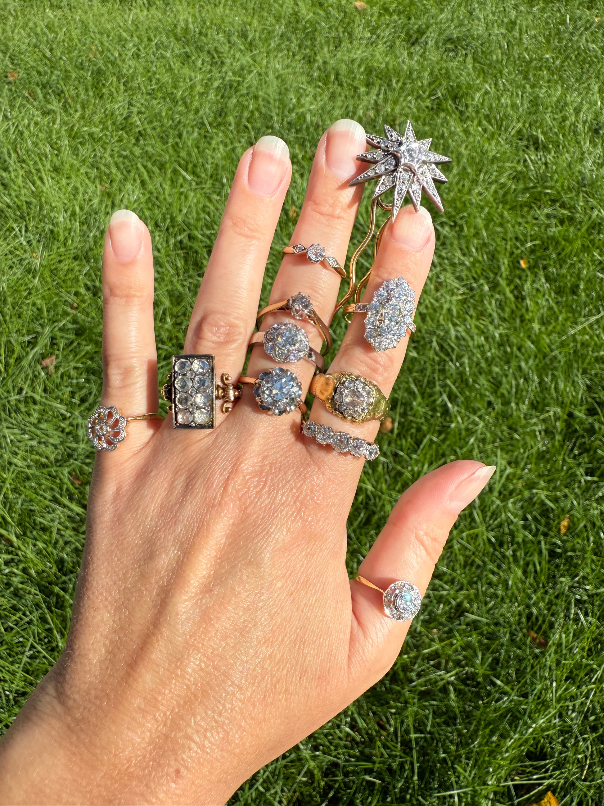 Please also note that all my pieces are pre-owned and in estate condition. They will have patina, surface wear, a few small nicks. These pieces may also have evidence of a sizing, some build up around the stones and / or inclusions seen under magnification, typical for antique pieces. I have mentioned any noticeable issues above and they are all still wearable and eager to be loved and accepted for many years to come, (the preservation of antique jewelry, even those with signs of their age and history, is important to me. : )