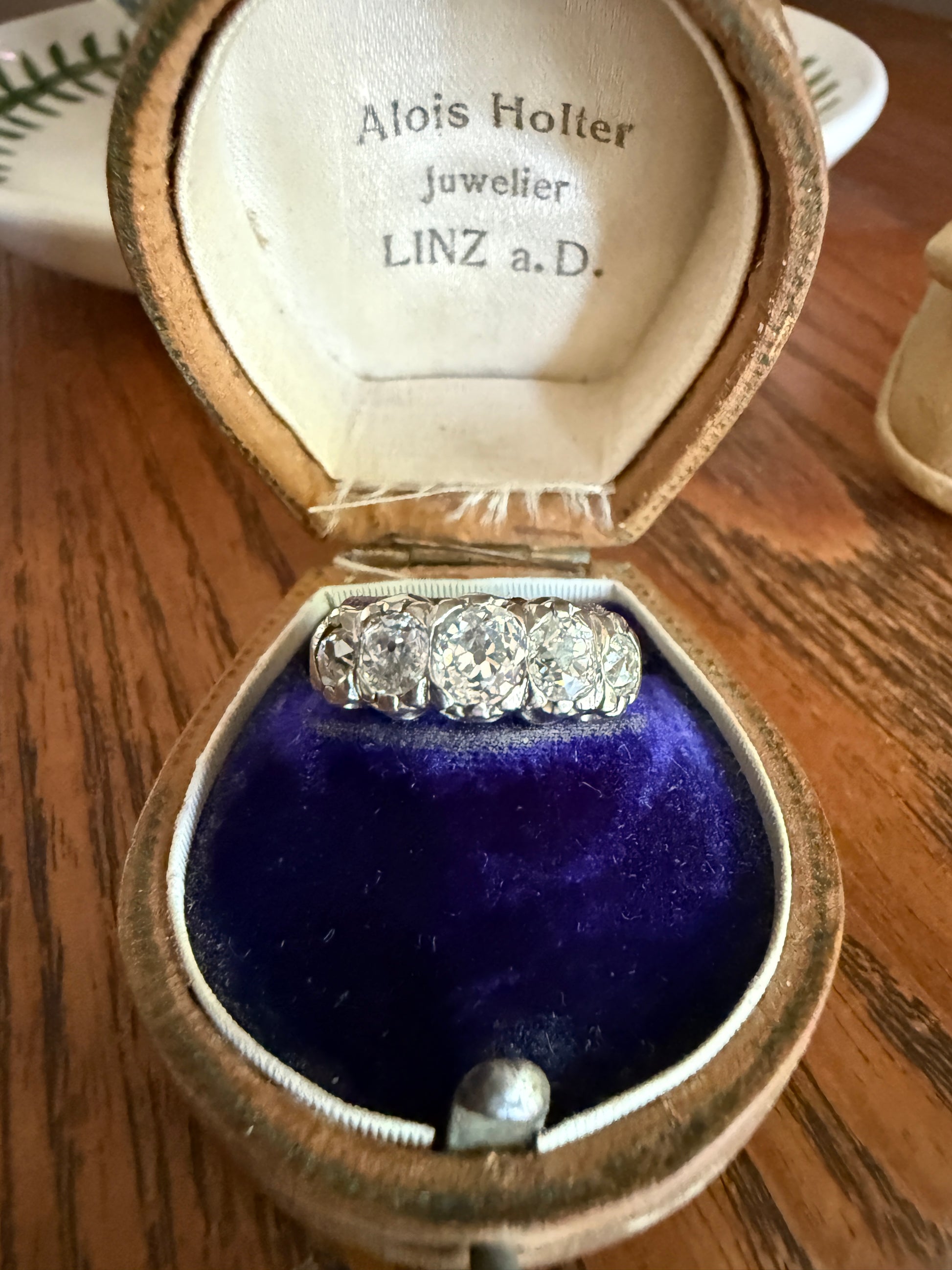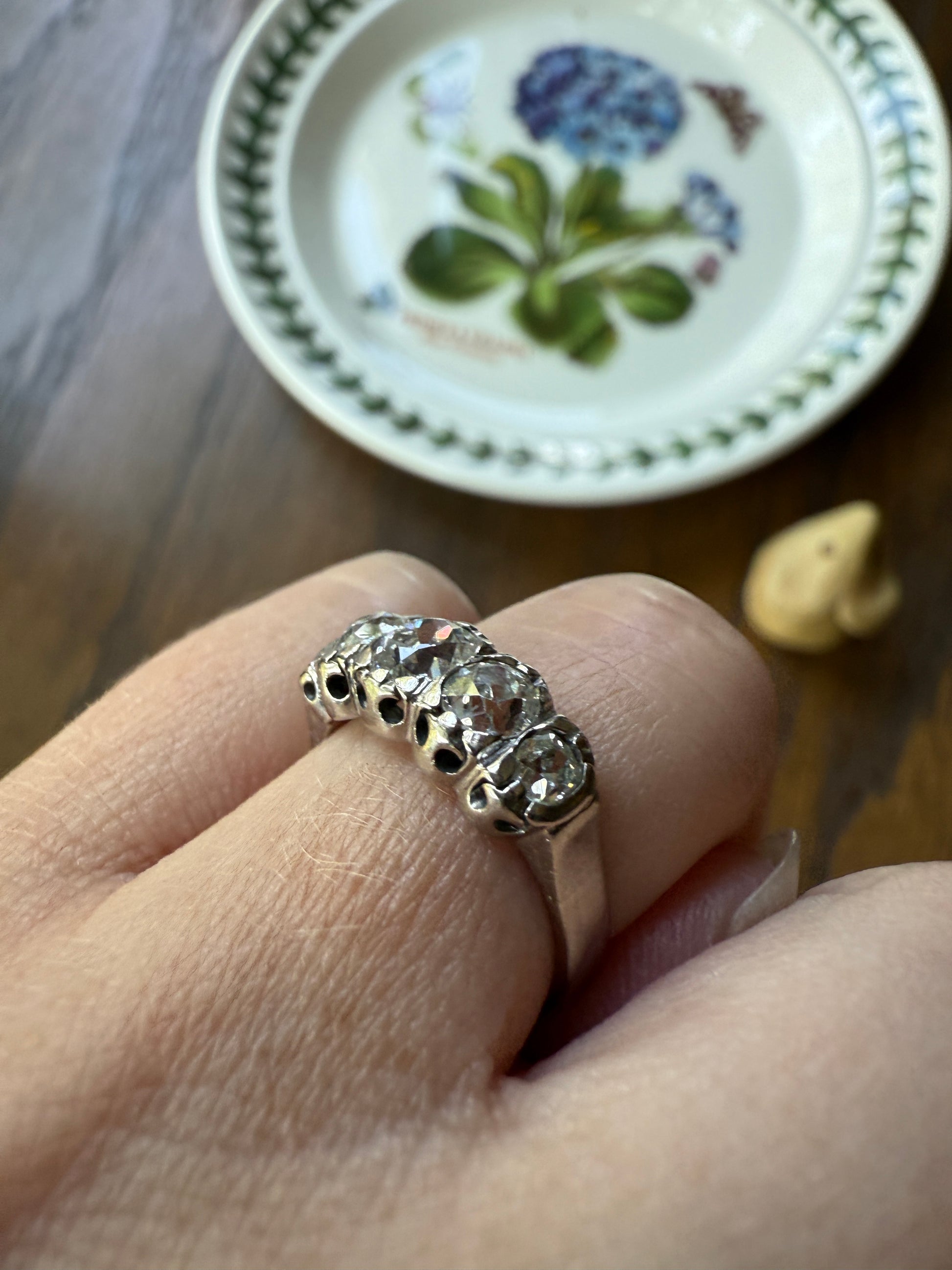 CHUNKY 1.5 Carat Five Stone Old Mine Cut Diamond Band French Antique Platinum Ring Stacker