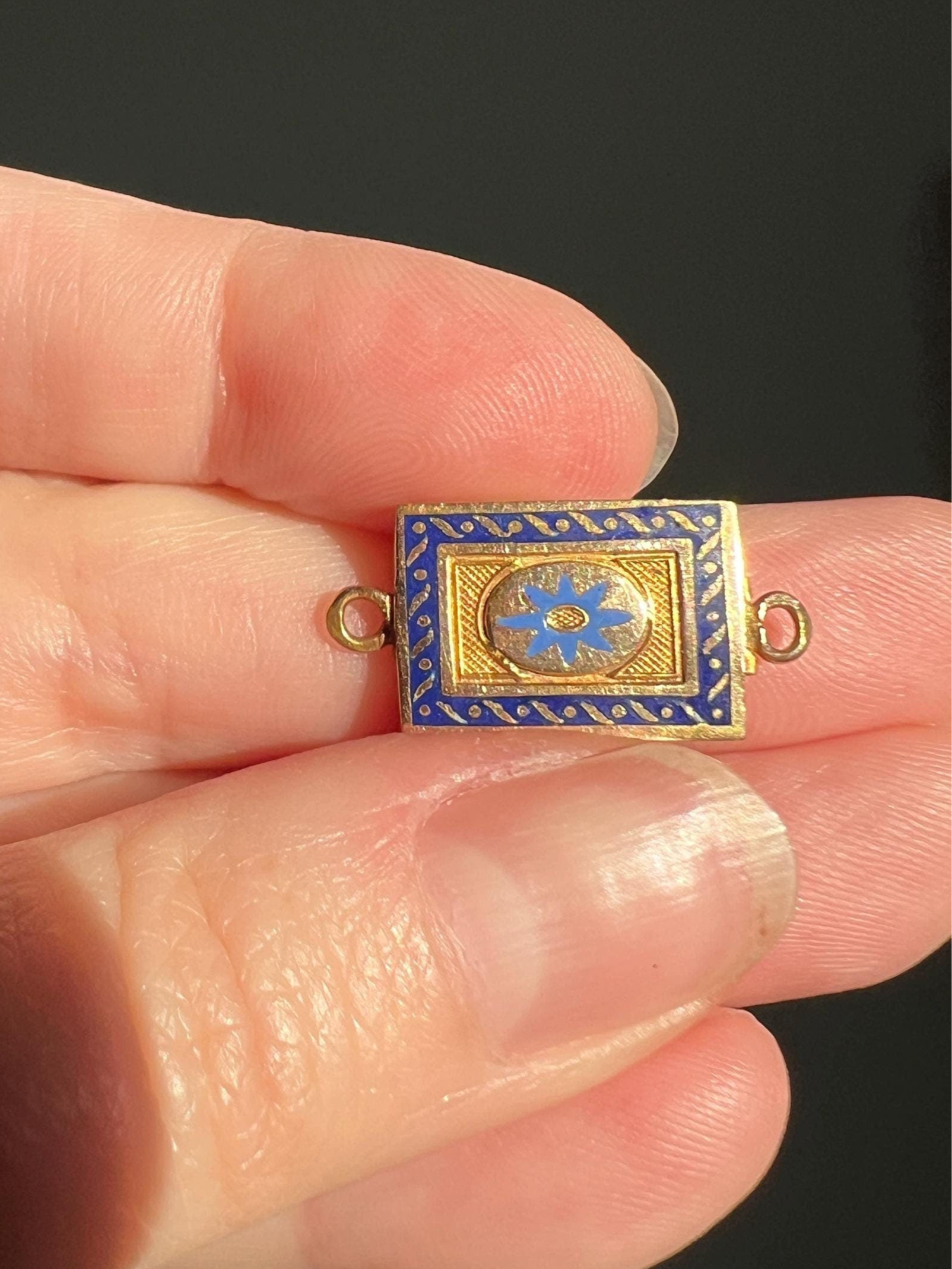 FLORAL Basket Reversible Blue STAR Antique VICTORIAN Clasp Pendant Panel 18k Gold Solid Enamel Necklace Bracelet Extender Parts Findings