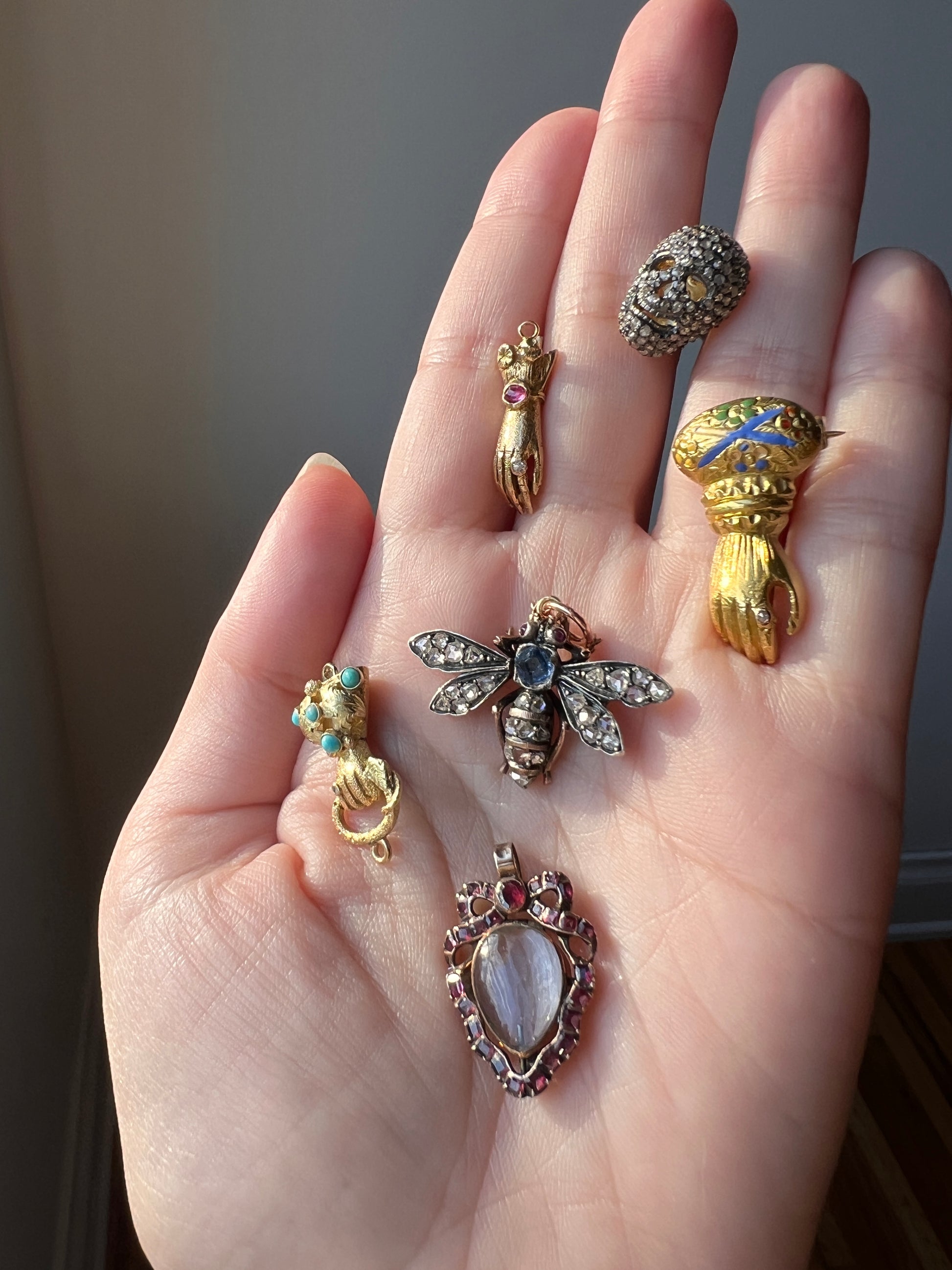 Oh those clever Victorians and their wonderful, whimsical figural jewelry! Thank heavens for them!