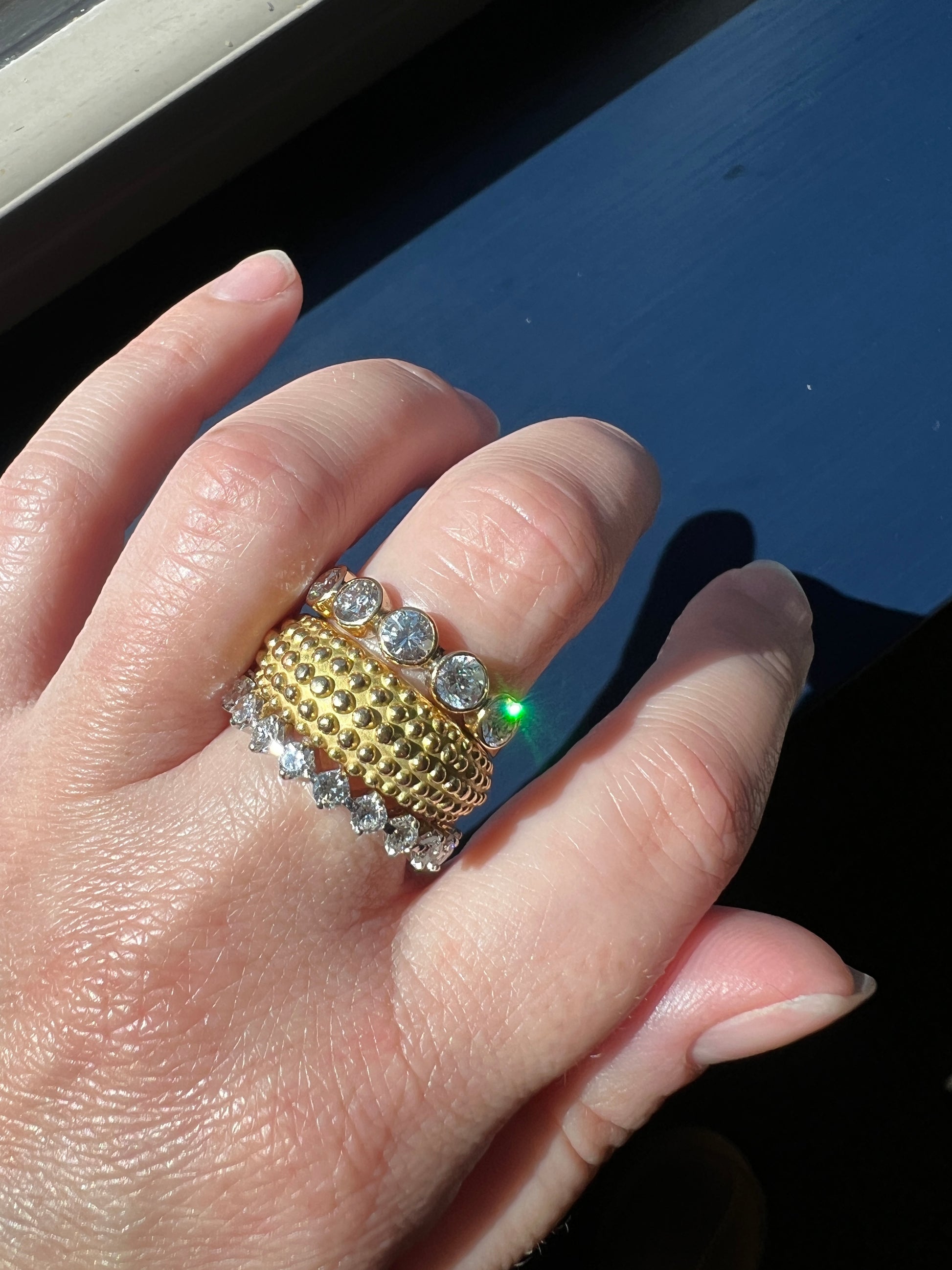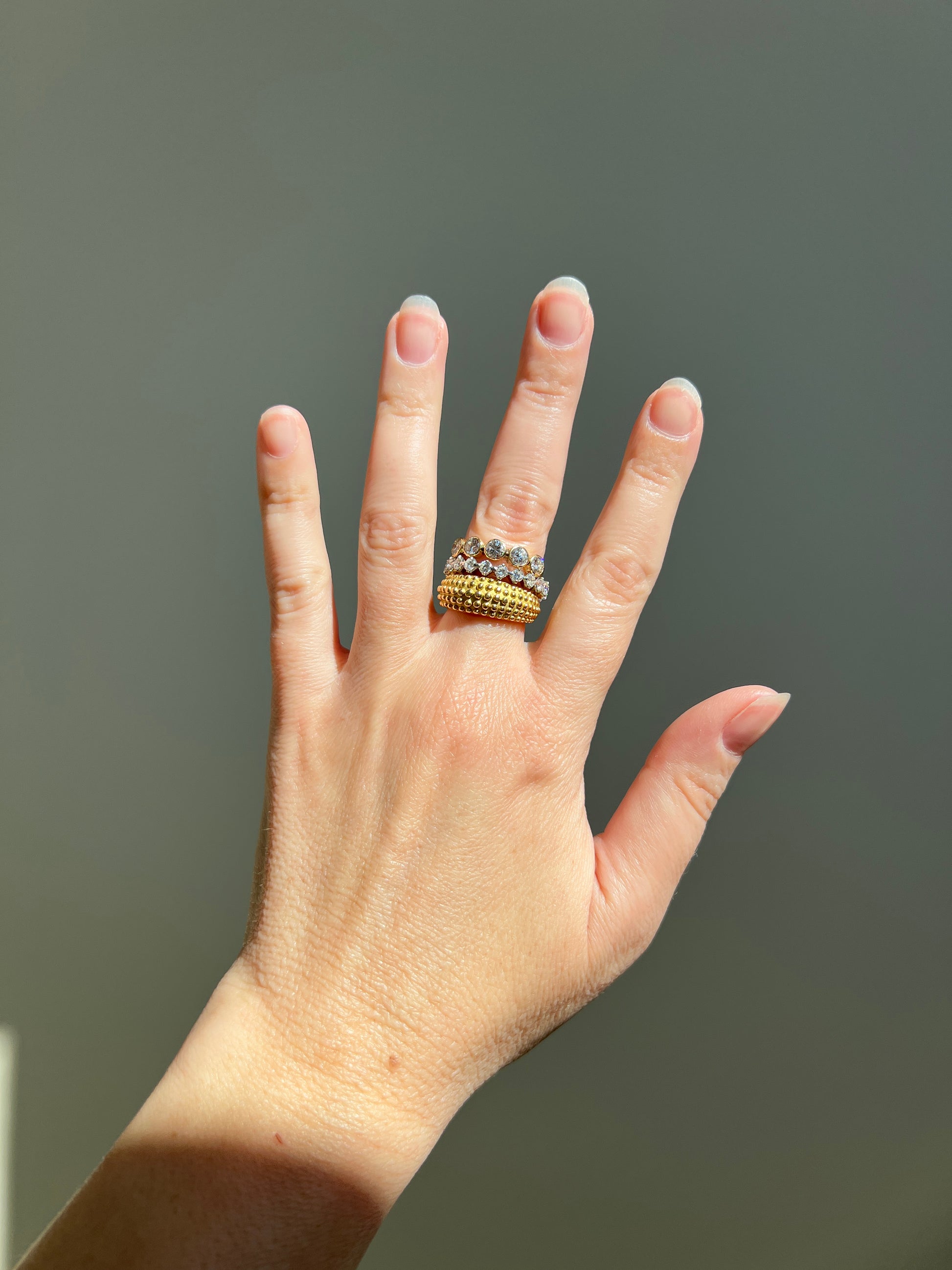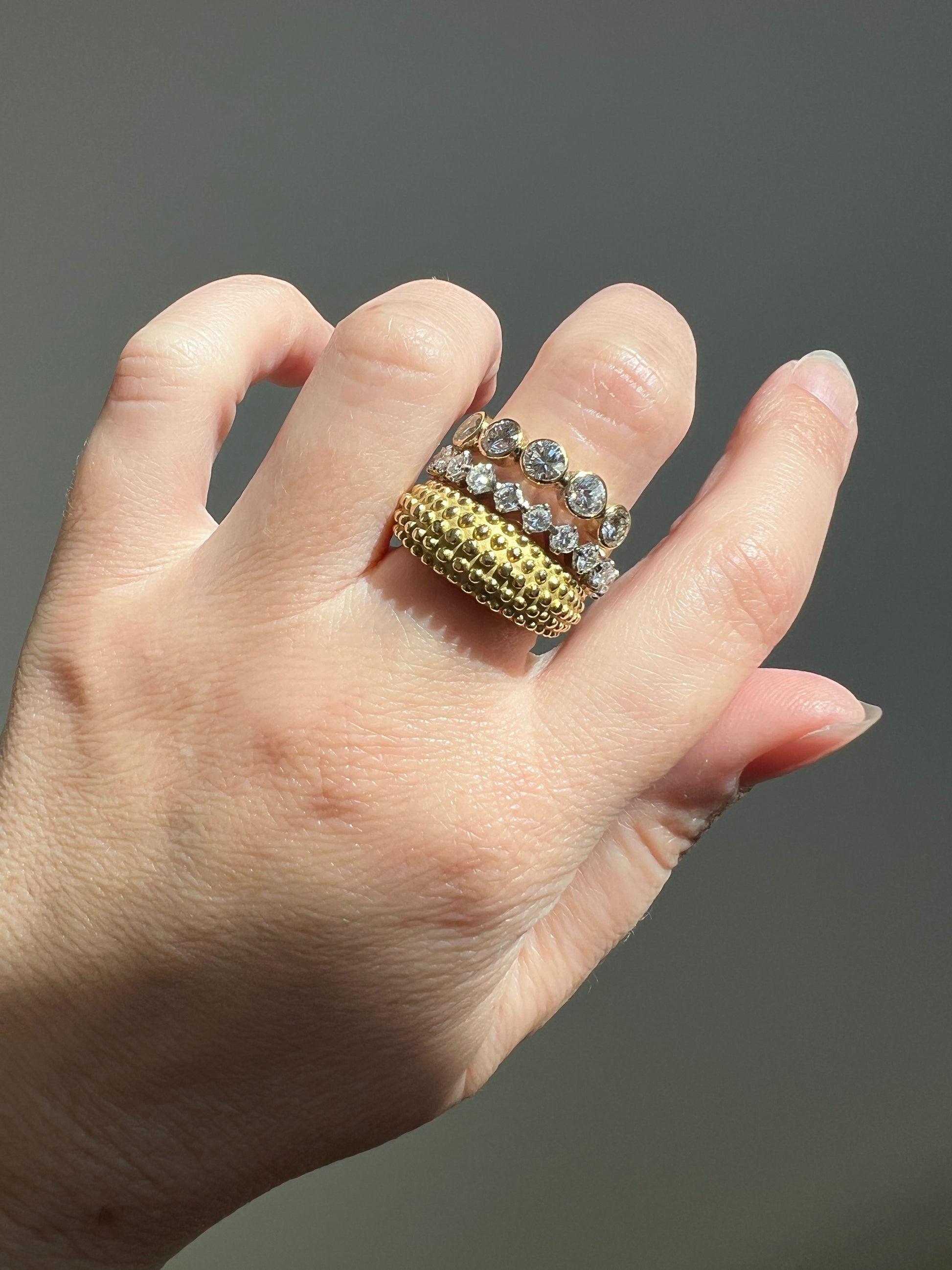 Heavy Ball Rivet Domed Band French Beaded 18k Gold Ring Satin & Shine Chunky Bombe Stacker Glowing 360 Texture Layering
