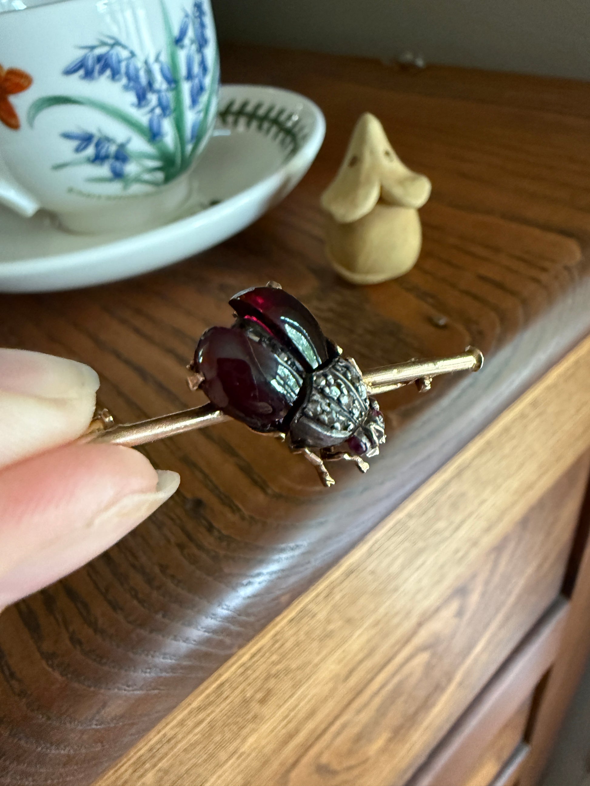 The Victorians were fascinated with nature and also with jewelry, and we see some wonderful designs come from the period incorporating both of these delights. As the figural pieces of the Victorian era often held a symbolism, beetles were viewed as amulets of good luck and protection. Indeed wearing bugs during the Victorian period was seen as genteel!