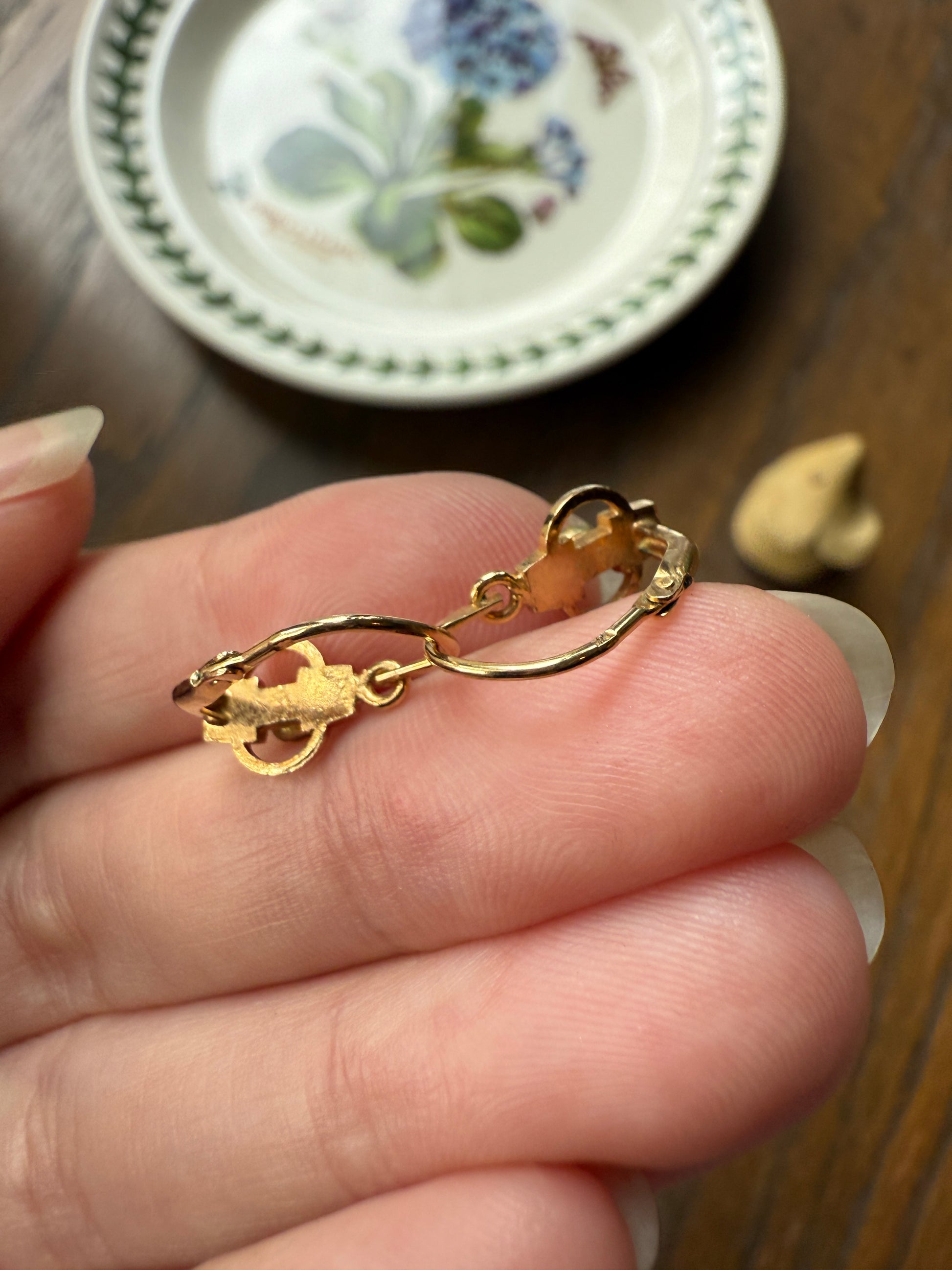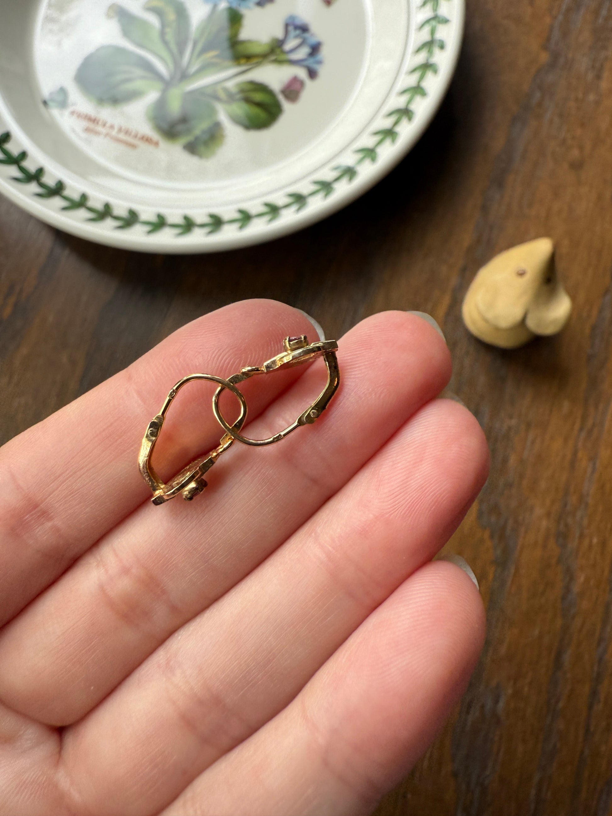 French antique gold filled dormeuse earrings. Very dainty and petite, meant to be slept in although we don't recommend 24/7 wear now on 100 year old antique hinges.