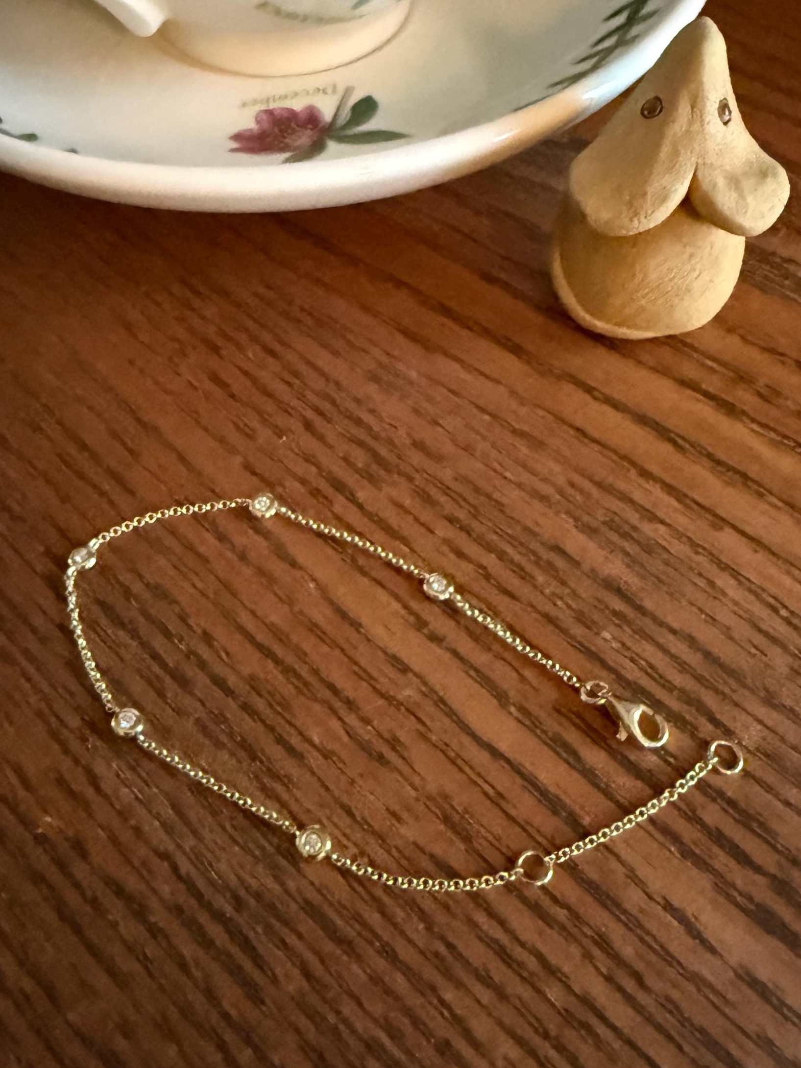 Minimalist Diamond Dainty Station Chain BRACELET 14k Gold Vintage Bezel Set Five Stone Wriststack Geometric Romantic Gift Adjustable