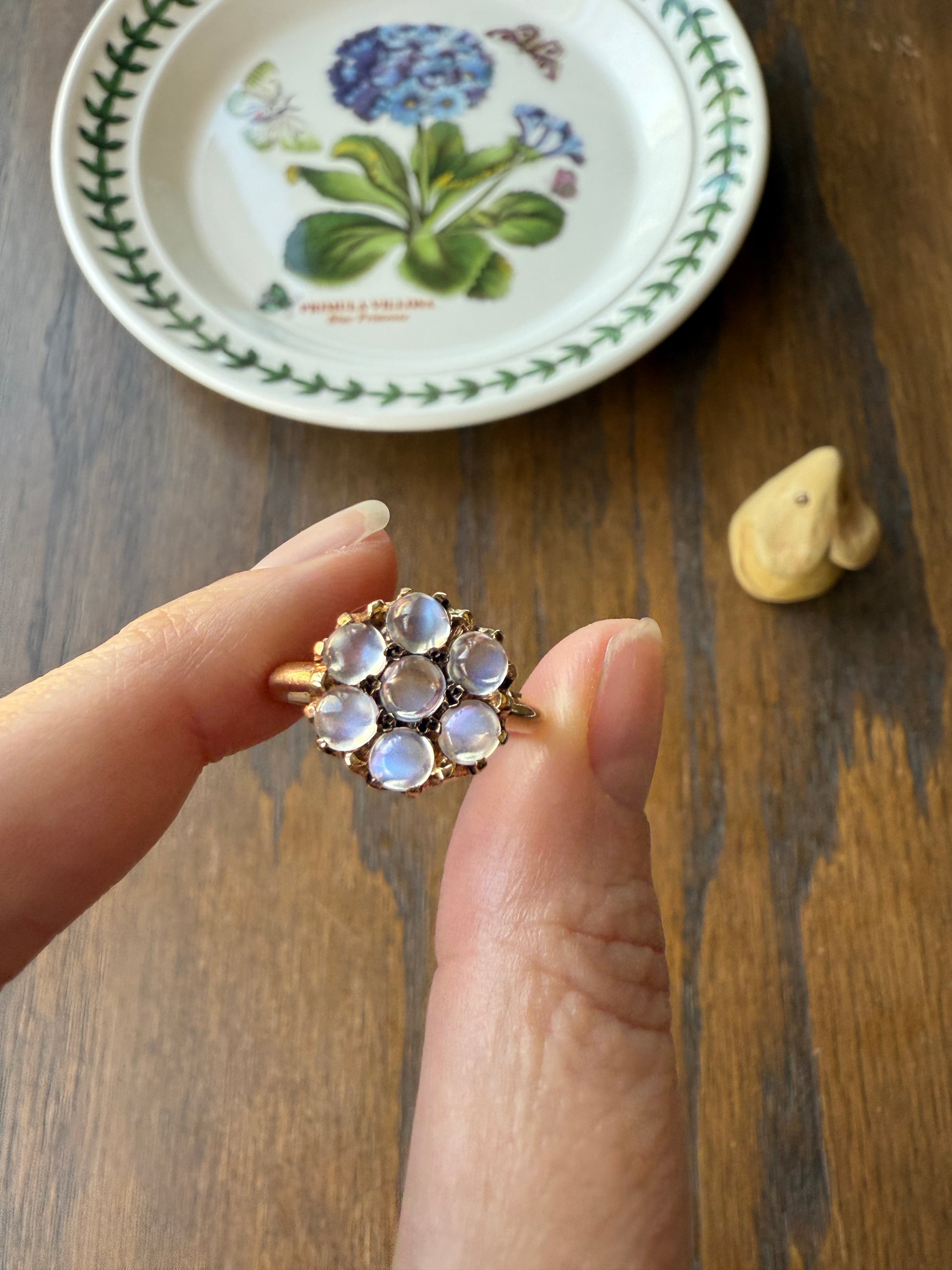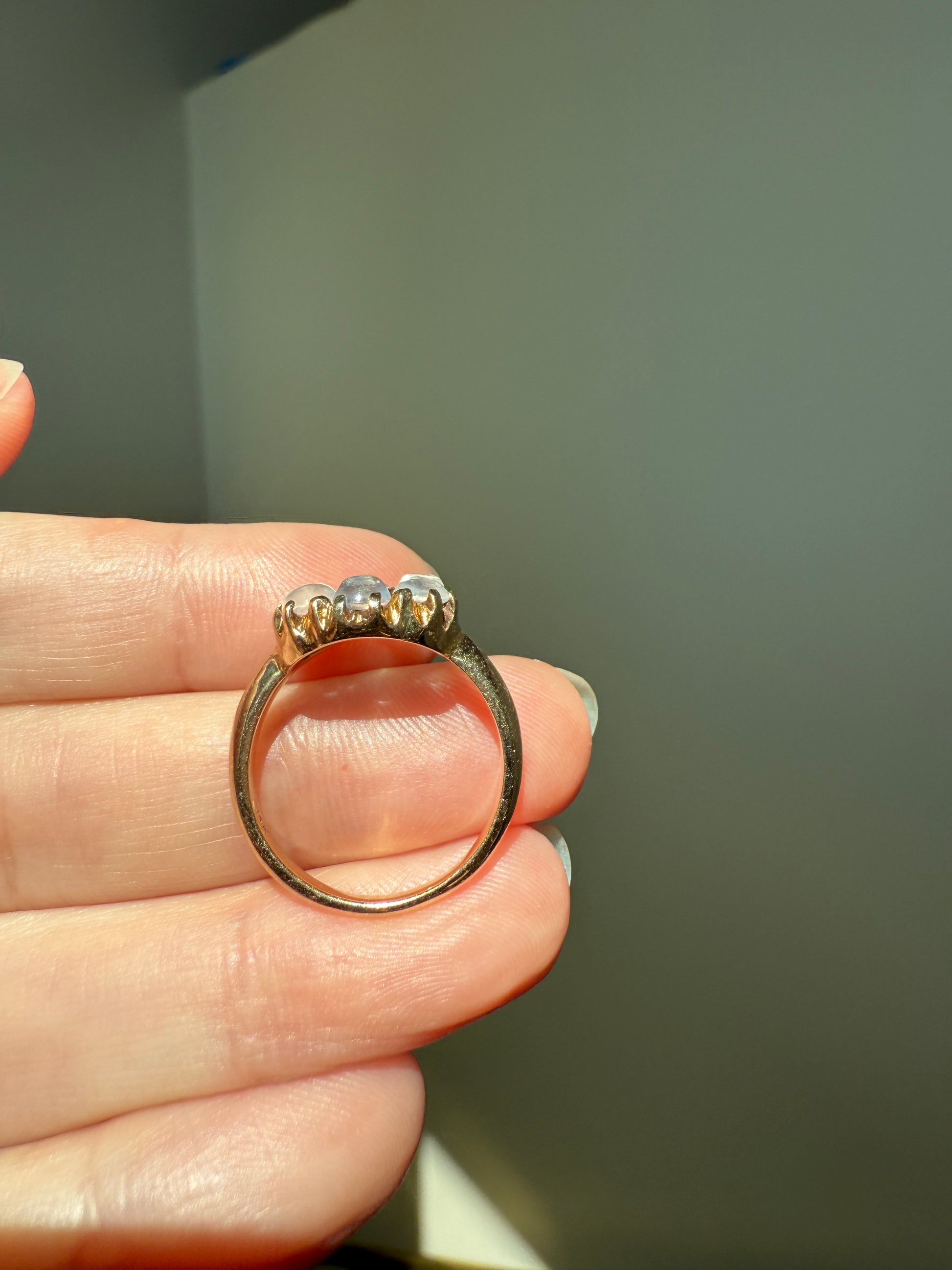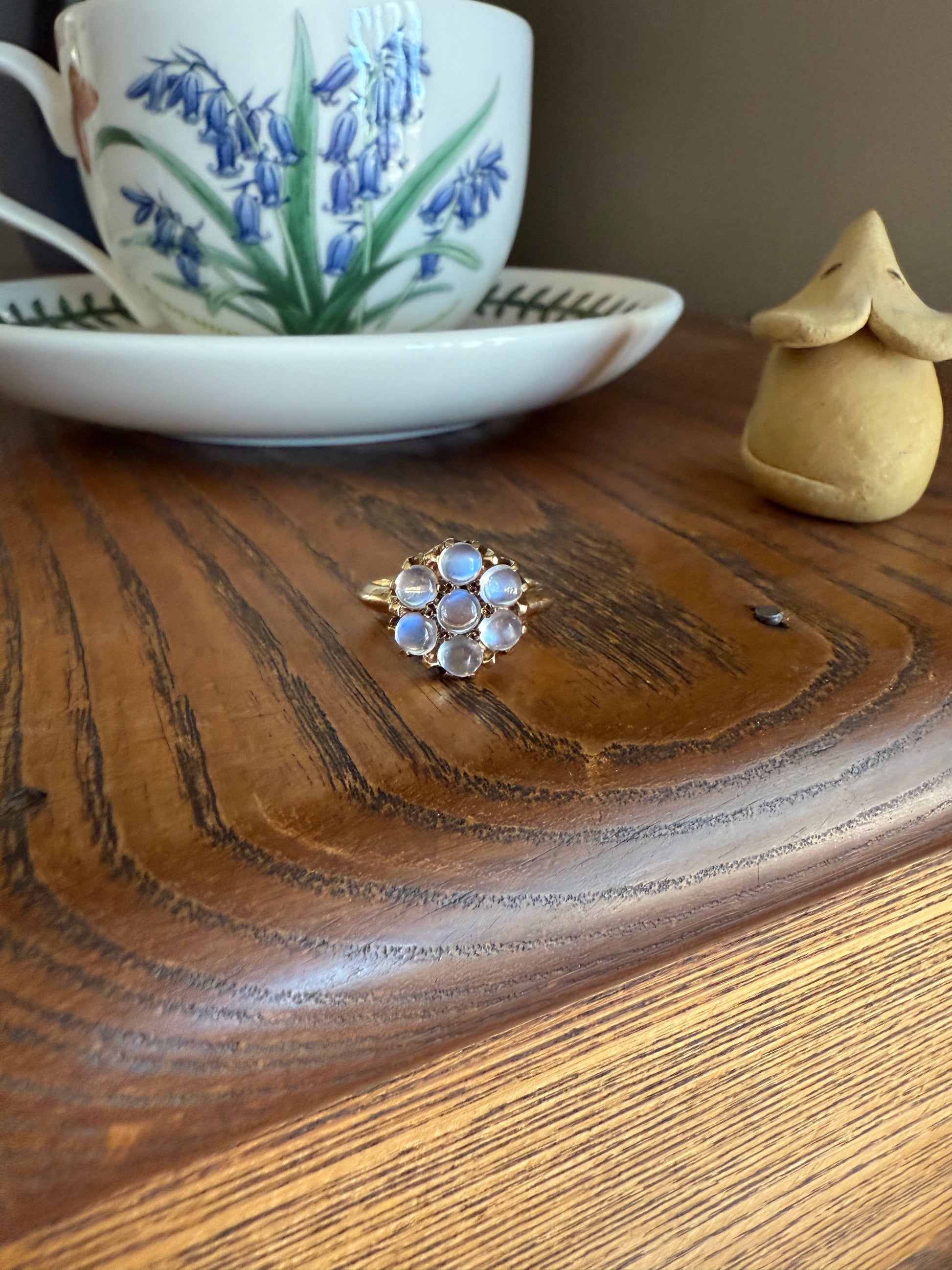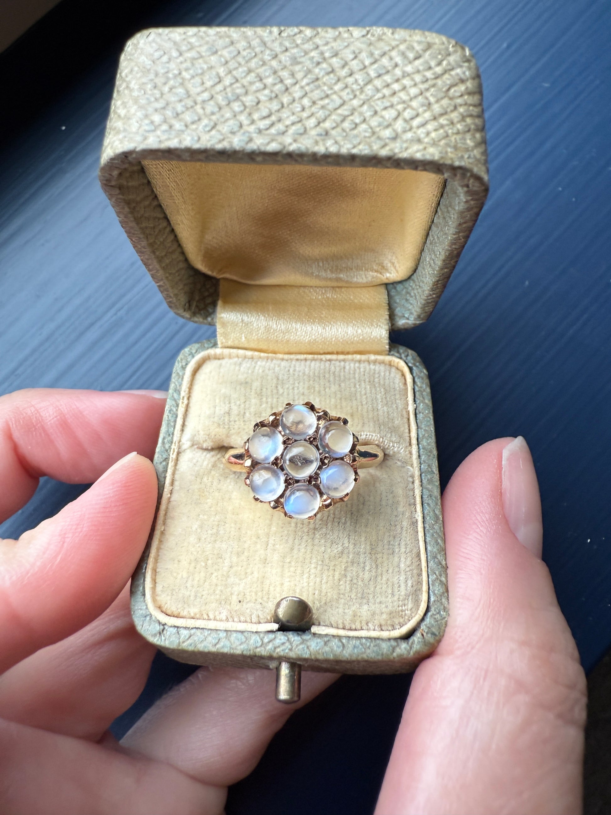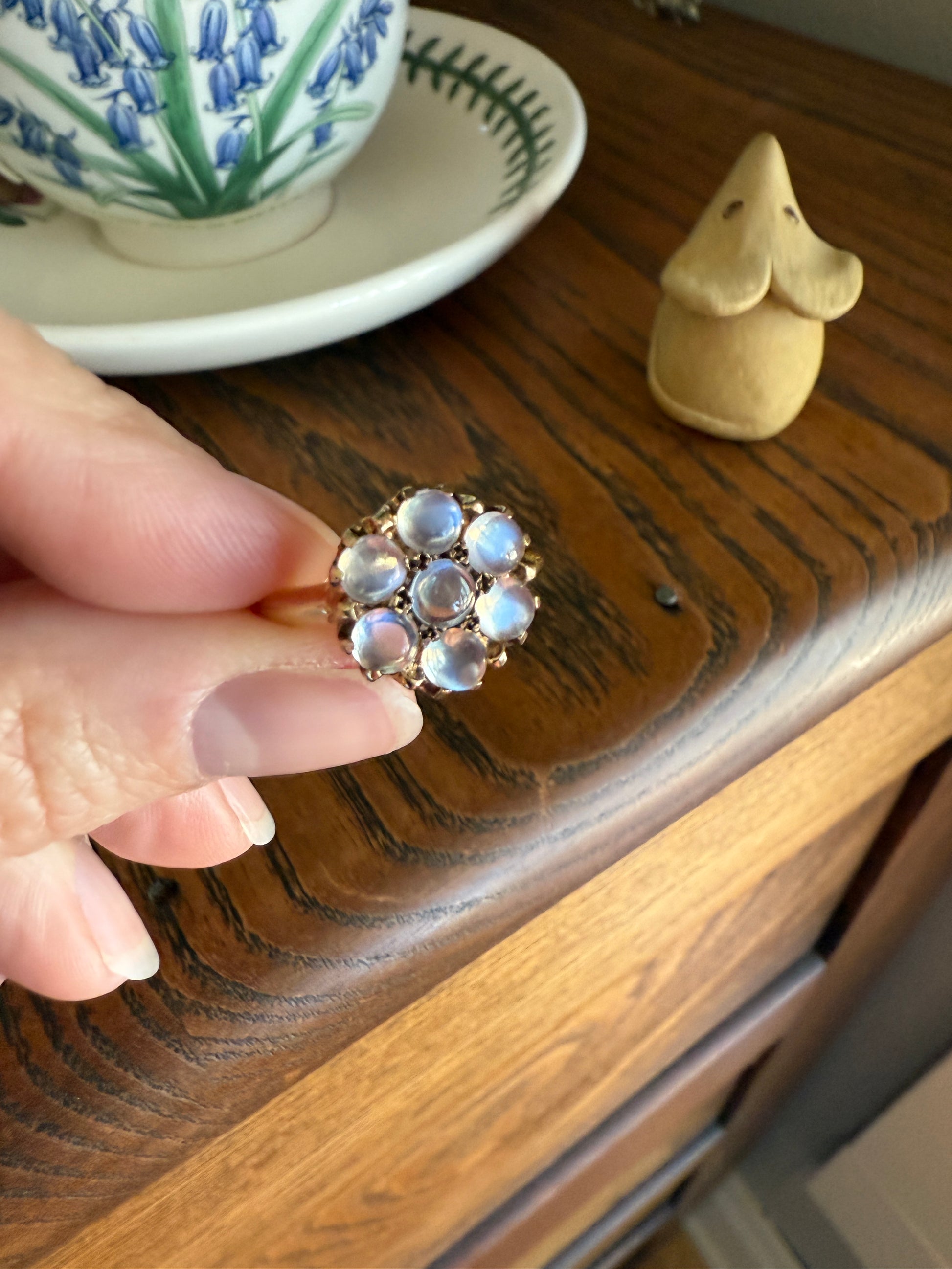 MOONSTONE Daisy Cluster Halo Ring Vintage to Art Deco Antique 14k Gold Seven Stone Blue Flash Chunky Glowing Orbs
