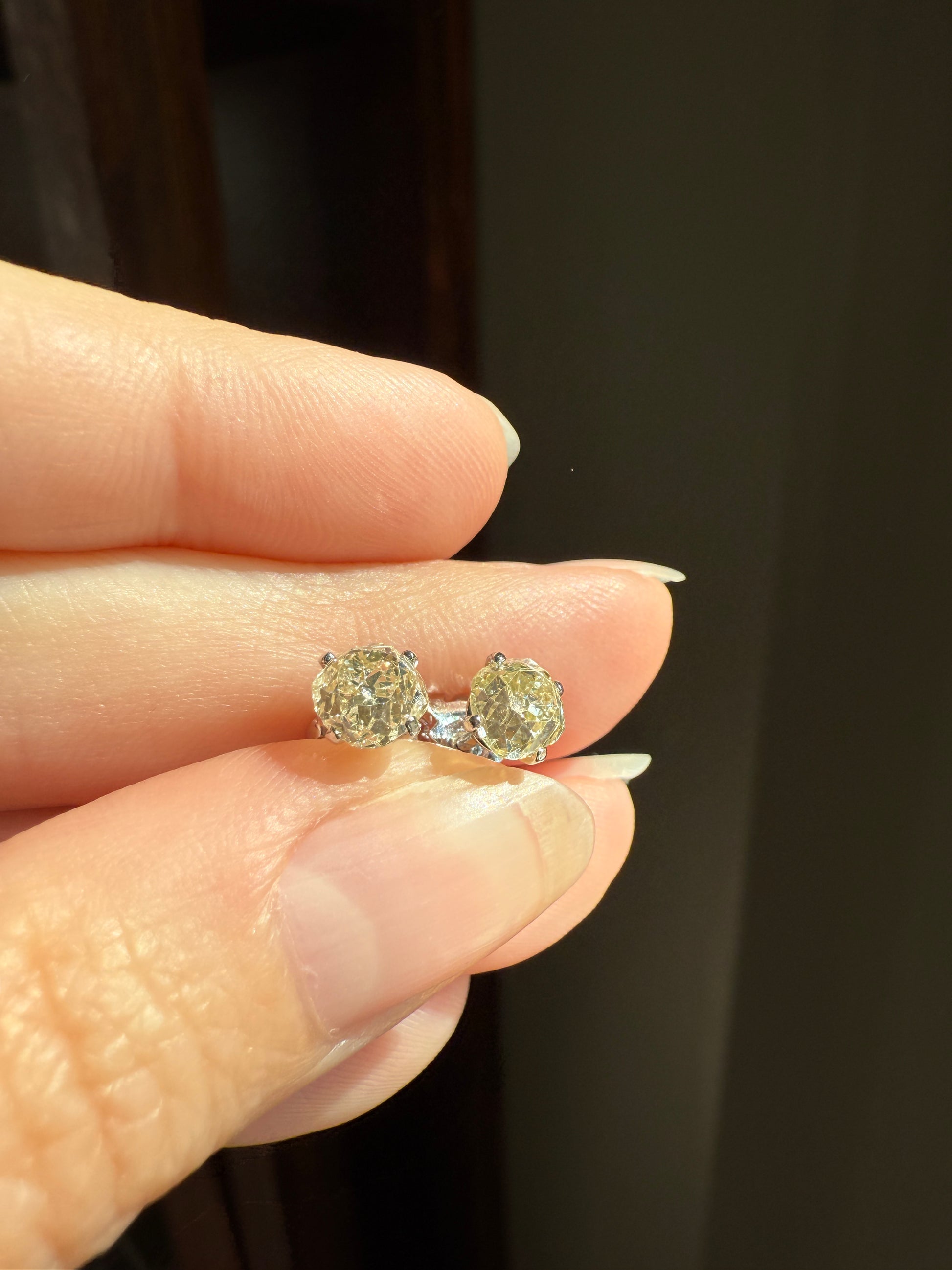 Super popular in the previews! These are my favorite kinds of diamonds - chunky, hand cut old mine cuts that are a little bit wonky in their freeform nature, with that delicious warm to pale yellow color. I love to find that subtle hue in my antique diamonds, knowing they were hand cut during a period when the mines from which they were cut generally produced warmer colored stones.