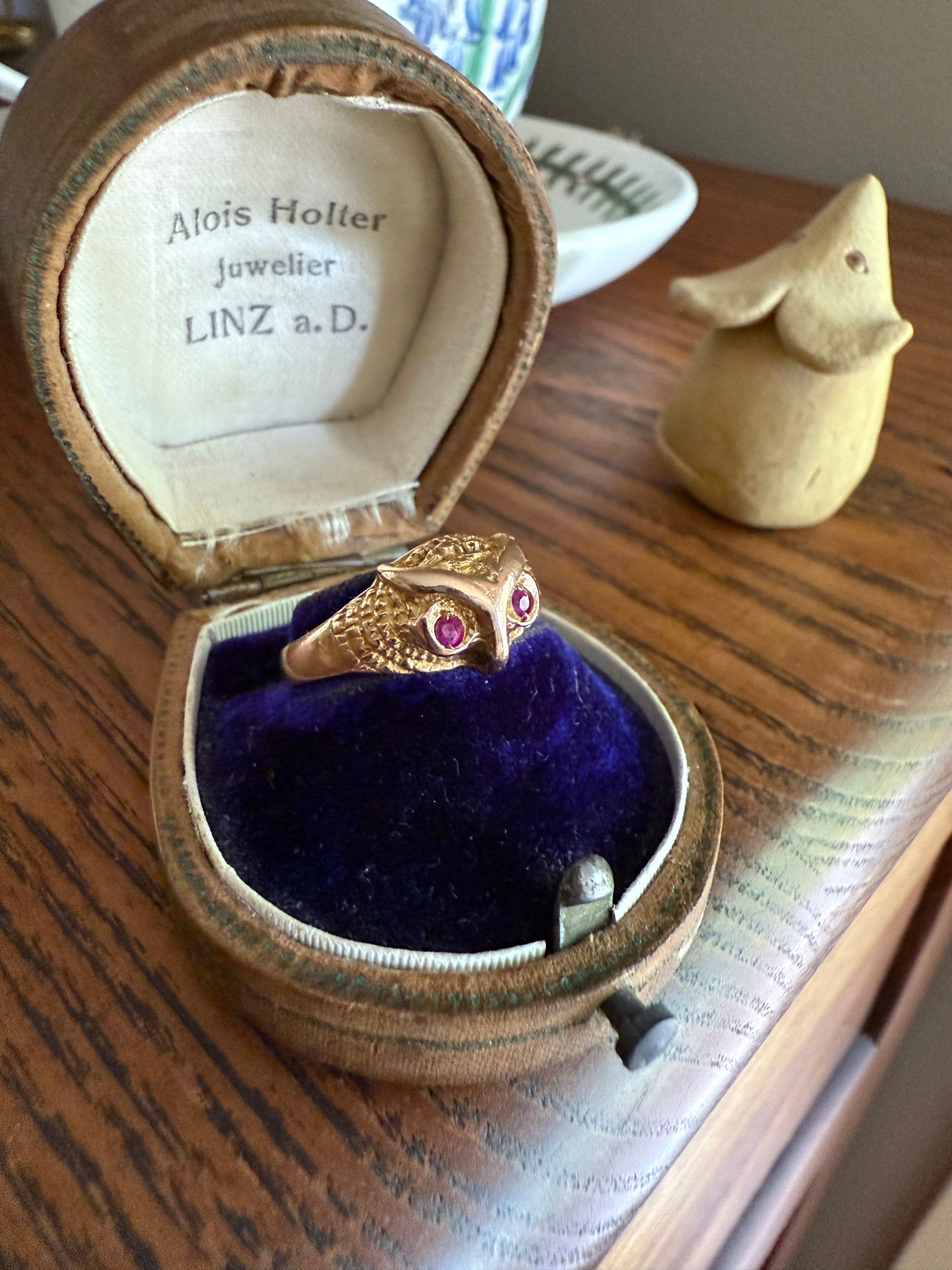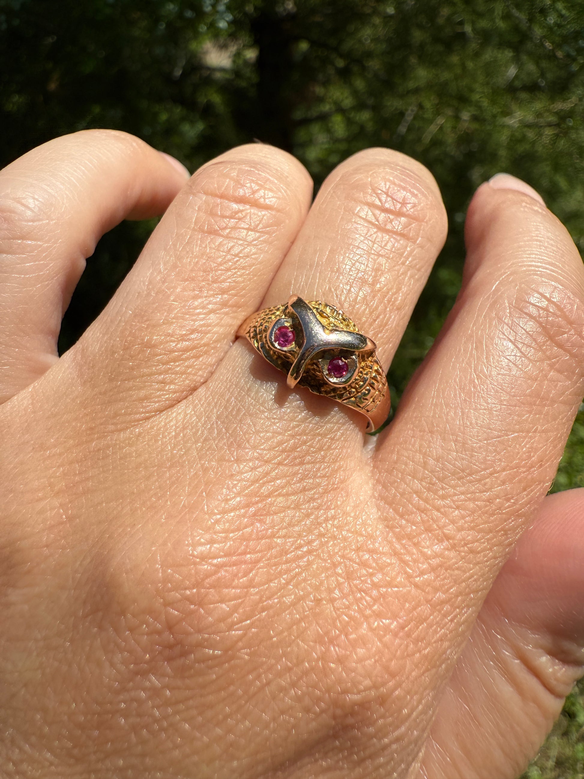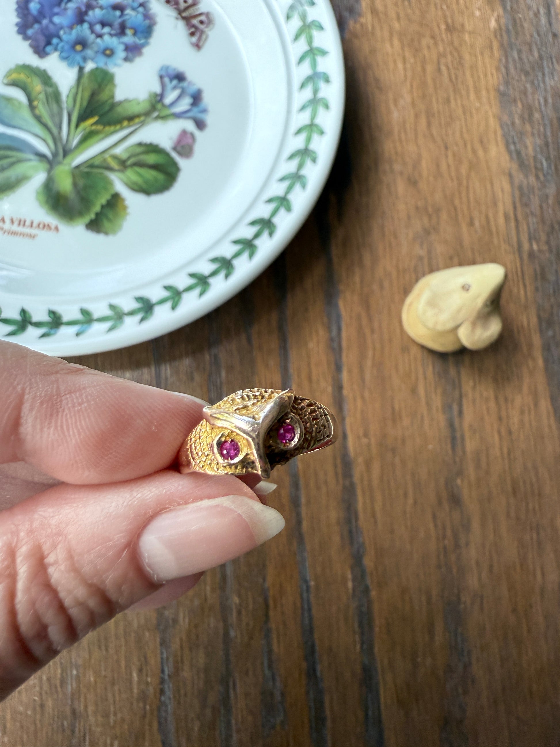 A fun figural owl ring. This one is vintage, such a whimsical piece that actually still stacks well with other pieces.