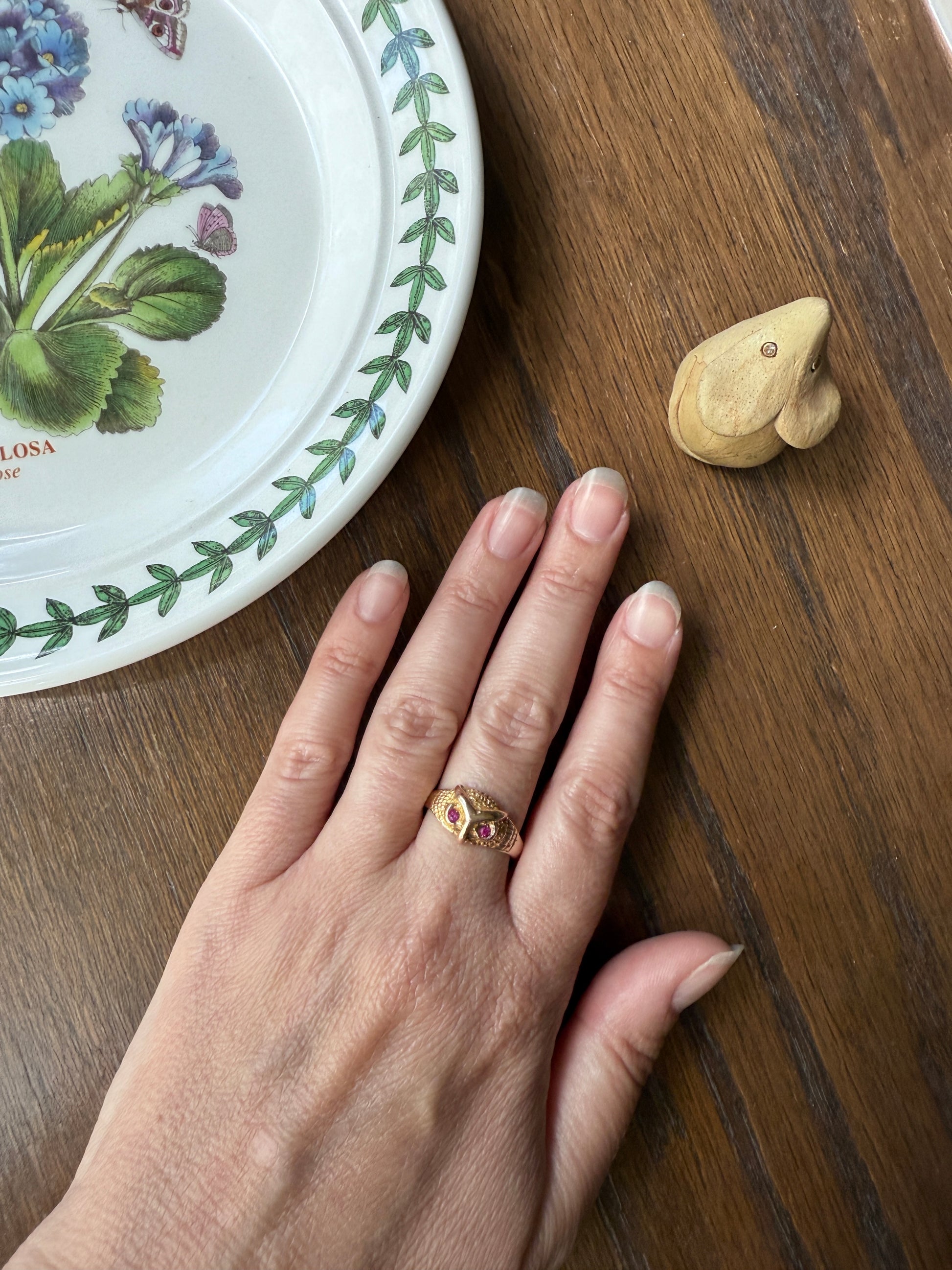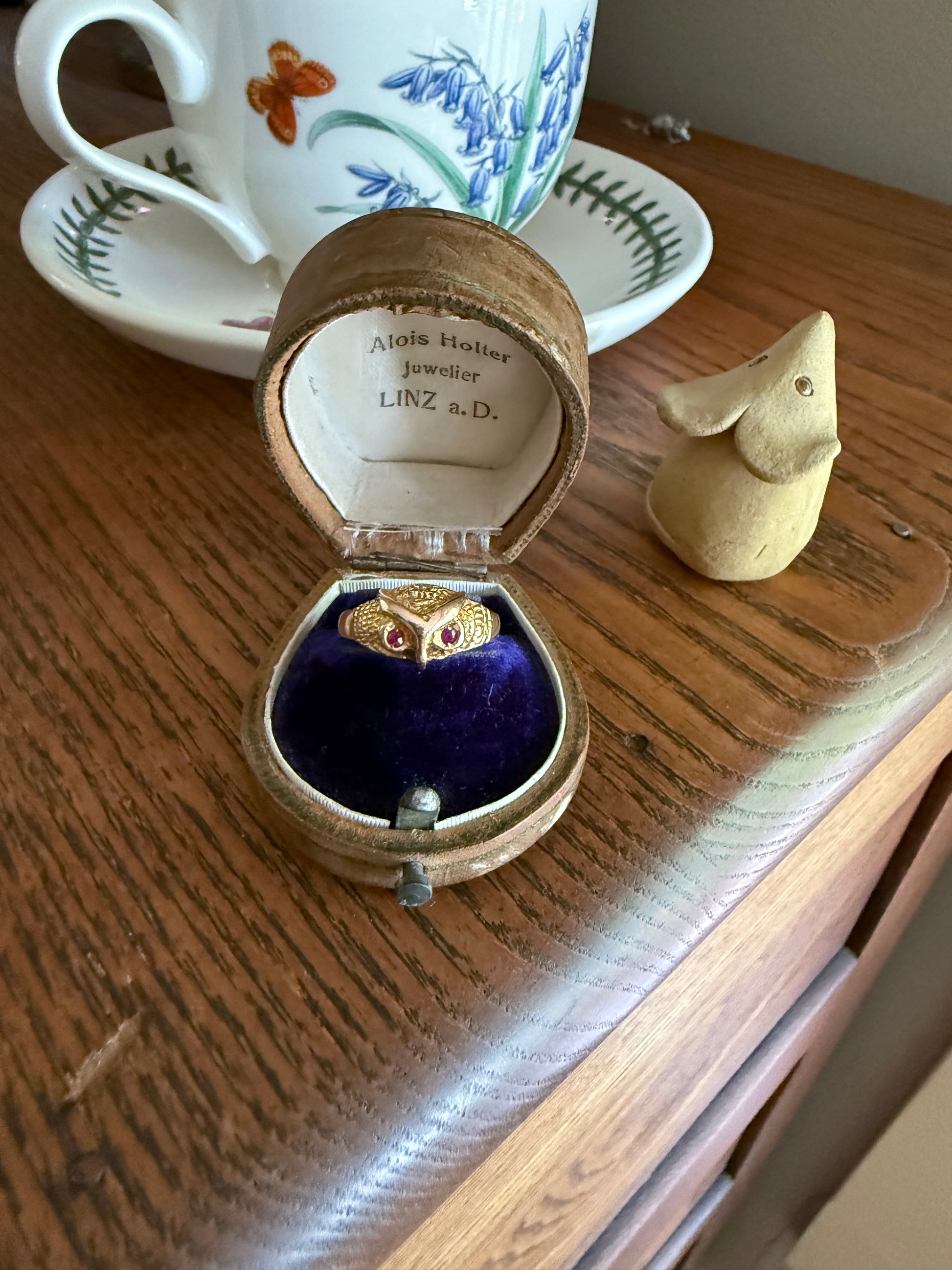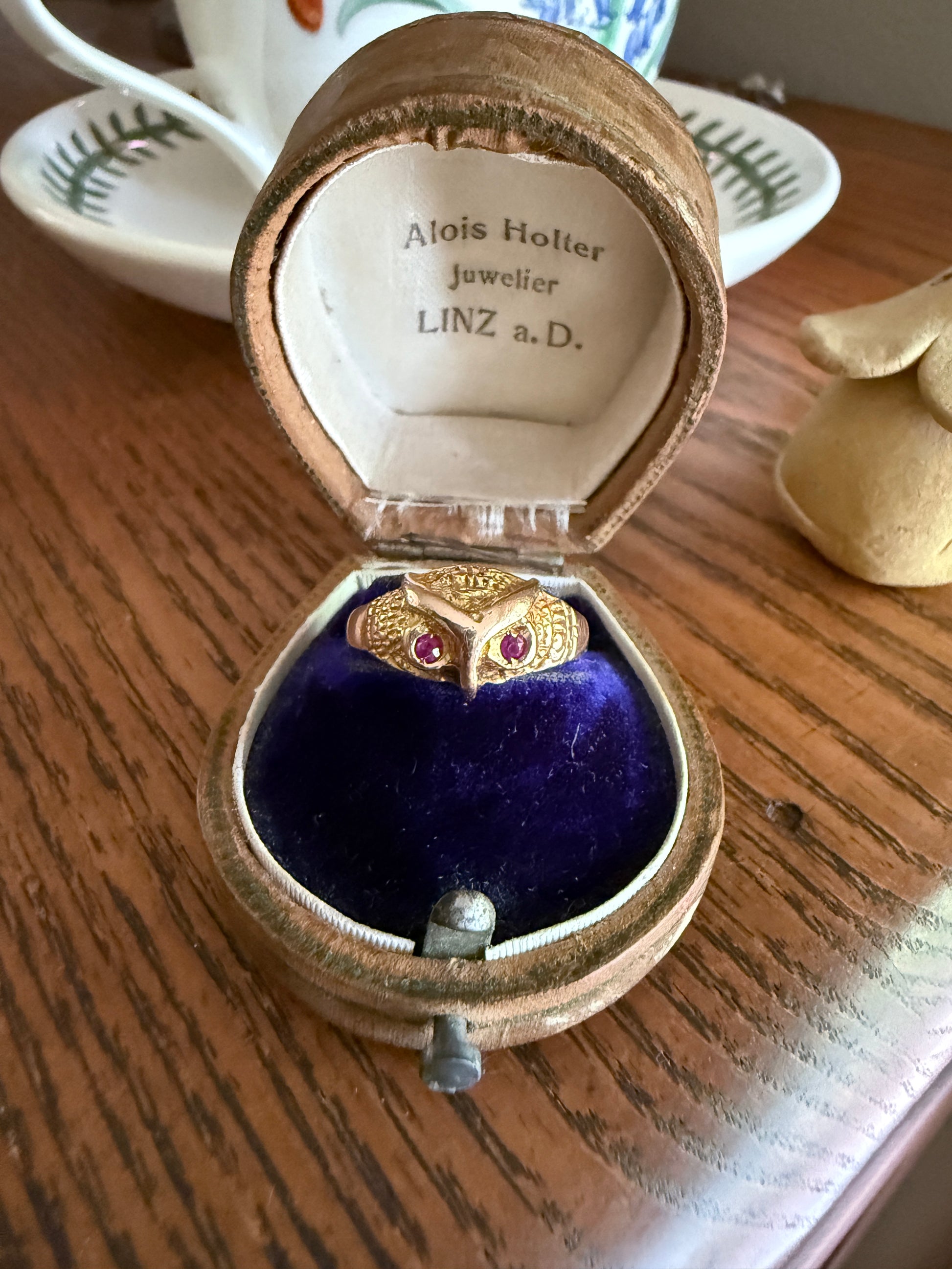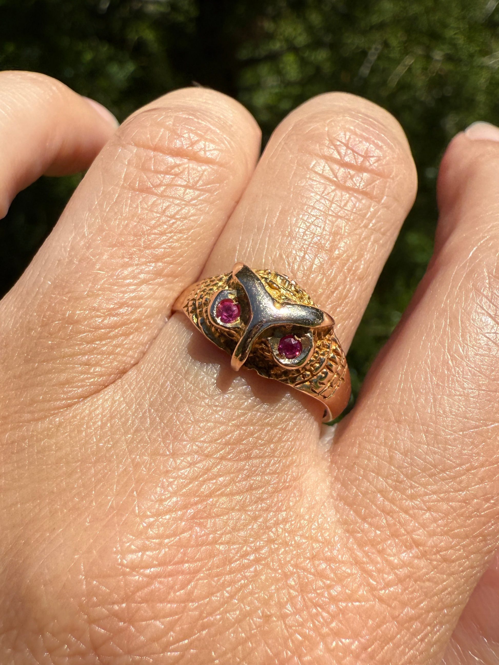 A fun figural owl ring. This one is vintage, such a whimsical piece that actually still stacks well with other pieces.