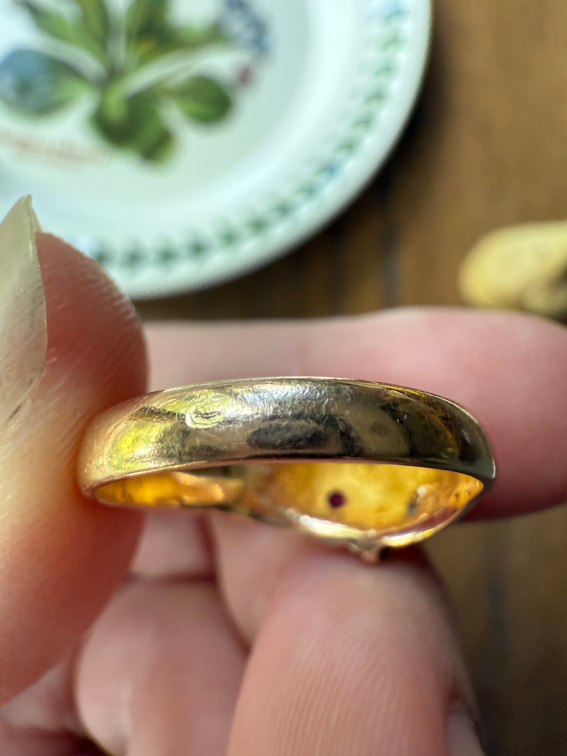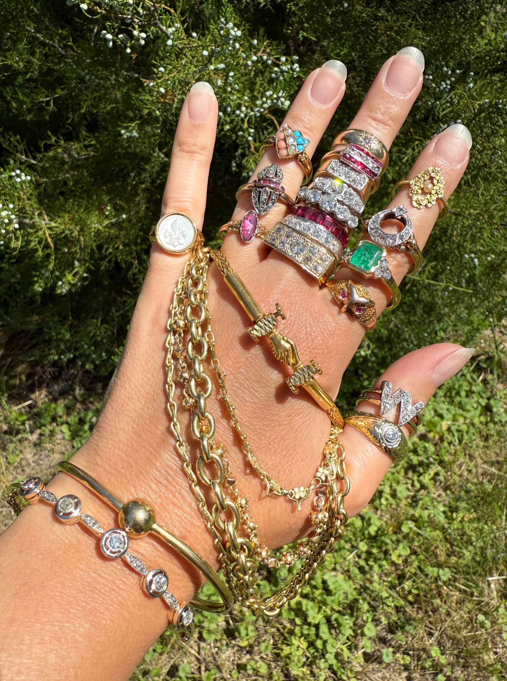 Please note that all my pieces are pre-owned and in estate condition. They will have patina, surface wear, a few small nicks. These pieces may also have evidence of a sizing, some build up around the stones and / or inclusions seen under magnification, typical for antique pieces. I have mentioned any noticeable issues above and they are all still wearable and eager to be loved and accepted for many years to come, (the preservation of antique jewelry, even those with signs of their age and history, is important to me. : )