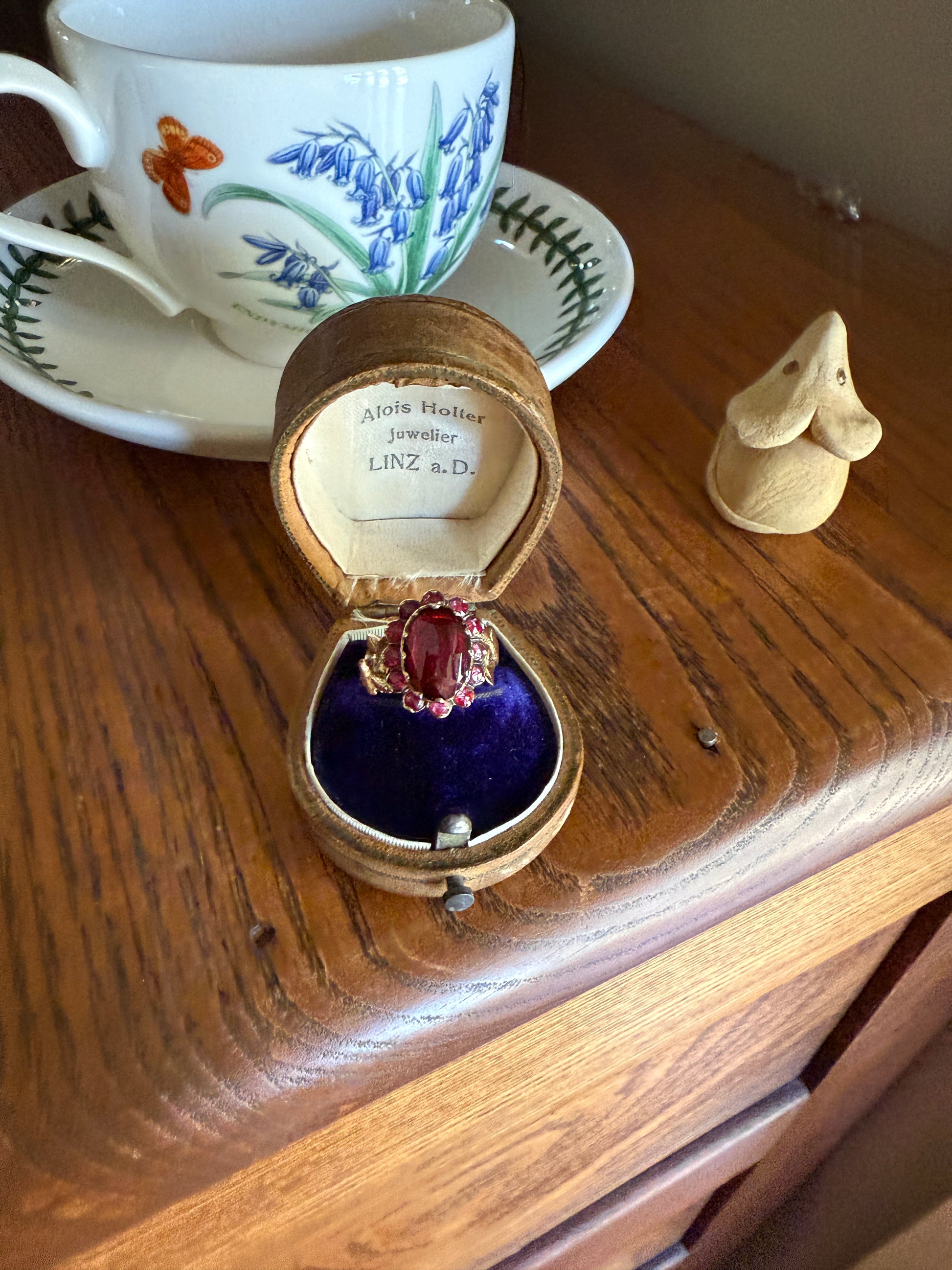 I pretty much always recommend gentler wear on my 140 year old pieces and with this one having closed back foiled settings, we should avoid getting them wet so as not to deteriorate the foil (although with the rich color of the stones any deterioration is much less visible than a foiled diamond setting where the stone is see through to the back.)