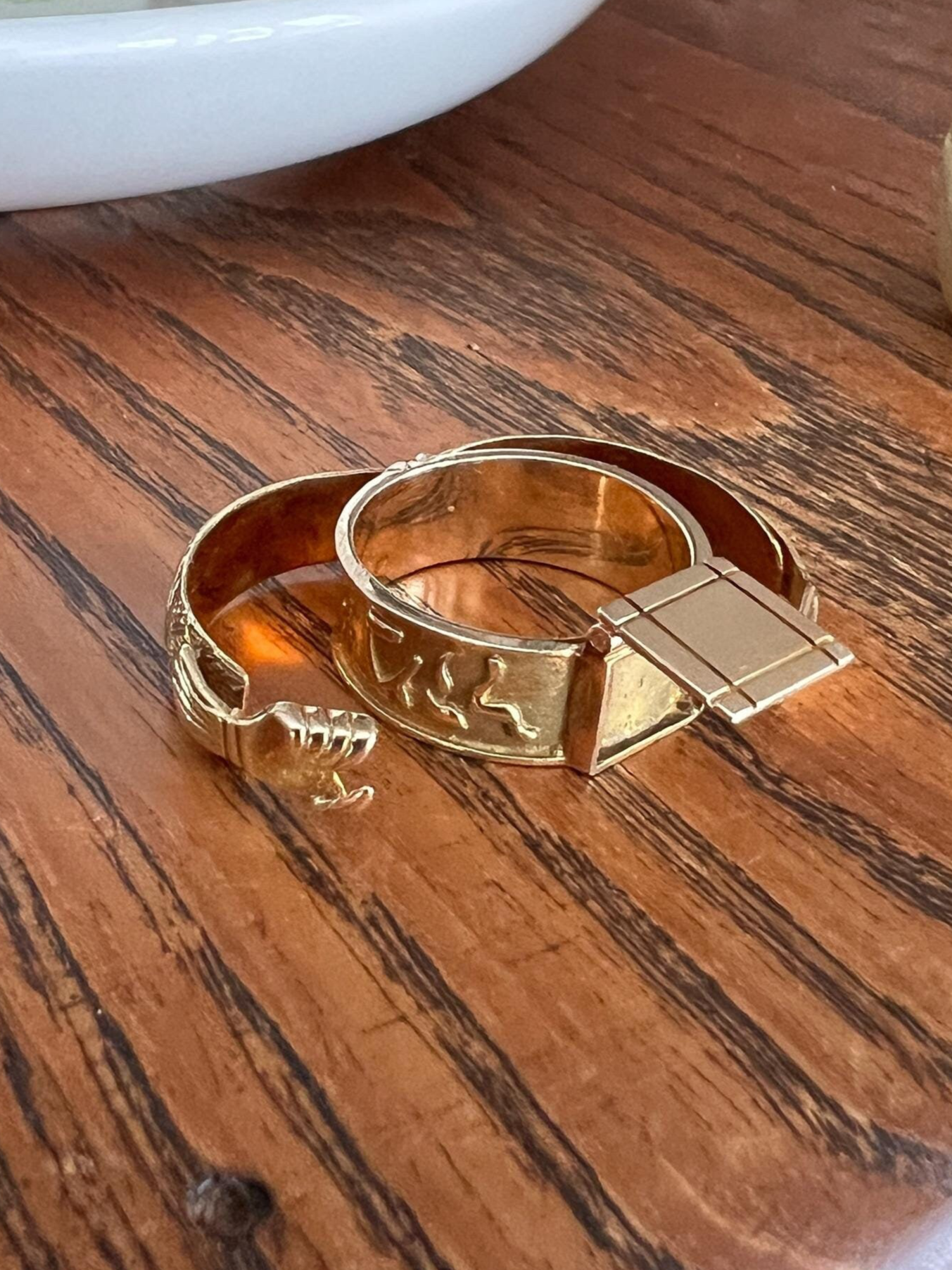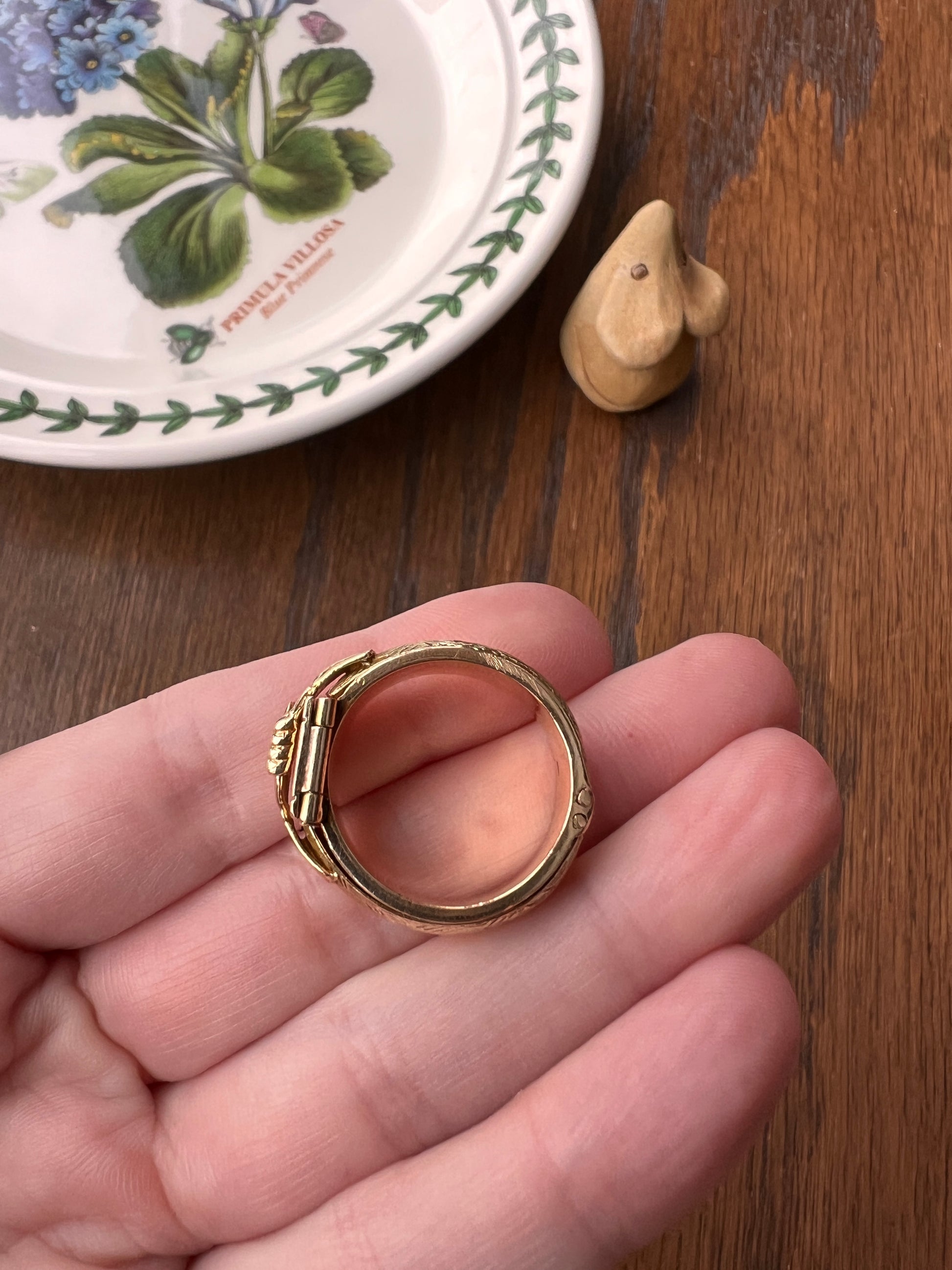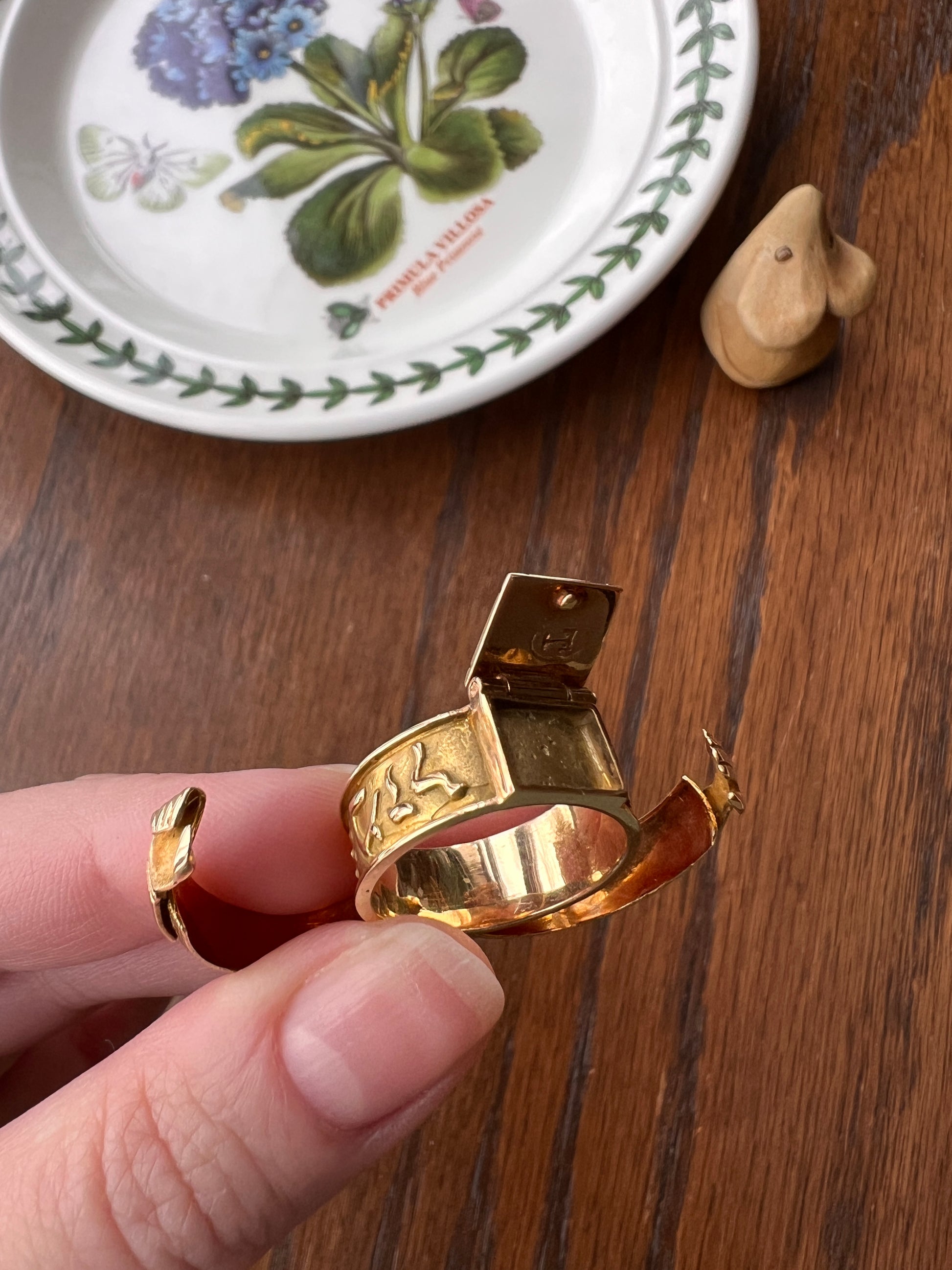 Rare Mazel Tov FEDE Hands Gimmel LOCKET Ring OPENING Secret Panel Doors Vintage to Antique 18k Gold