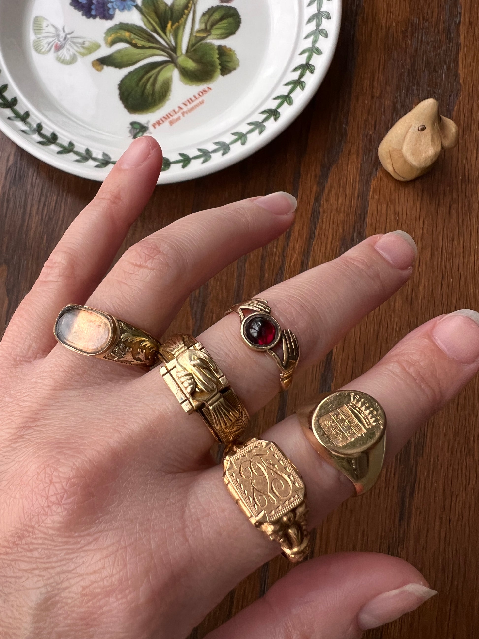 Please note that all my pieces are pre-owned and in estate condition. They will have patina, surface wear, a few small nicks. These pieces may also have evidence of a sizing, some build up around the stones and / or inclusions seen under magnification, typical for antique pieces. I have mentioned any noticeable issues above and they are all still wearable and eager to be loved and accepted for many years to come, (the preservation of antique jewelry, even those with signs of their age and history, is important to me. : )