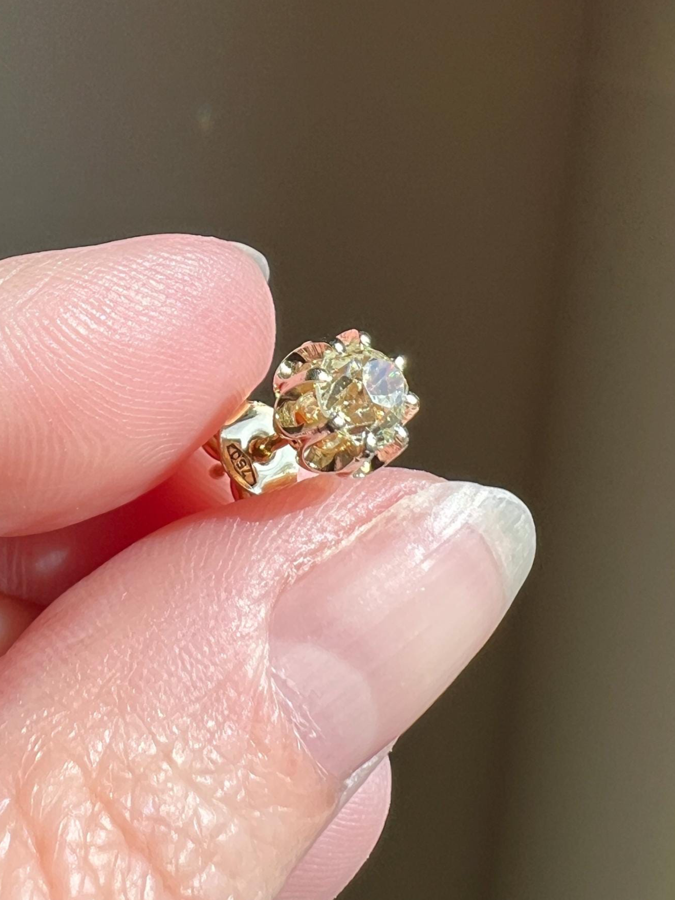 Single Antique .6 Carat Eye Clean Pale Yellow Old Mine Cut DIAMOND Prong Set Stud Earring French 18k Gold
