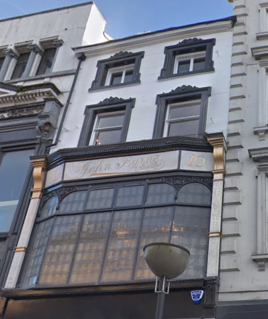 John Byrne & Son was a jewelry business that had premises at 83 Hatton Garden in London and 10 Bold Street in Liverpool, with both addresses imprinted inside the lid of the box. The company operated in the late 19th and early 20th centuries, with John Byrne becoming the sole proprietor in 1886. They ceased trading around 1937 but a search of the Liverpool address on google maps still today brings up an image of their shop location with the company name still beautifully painted as signage on the front of the old building.
