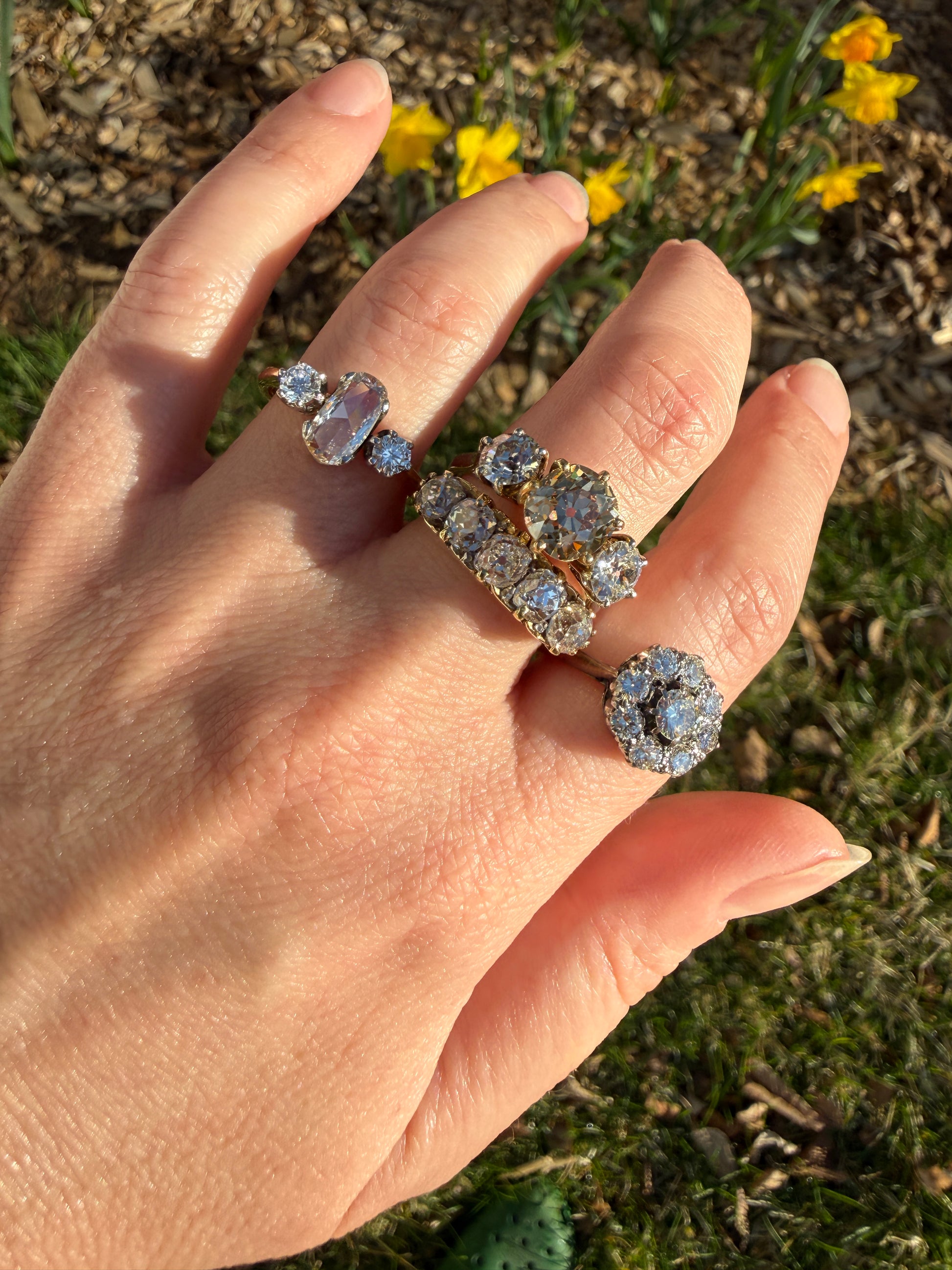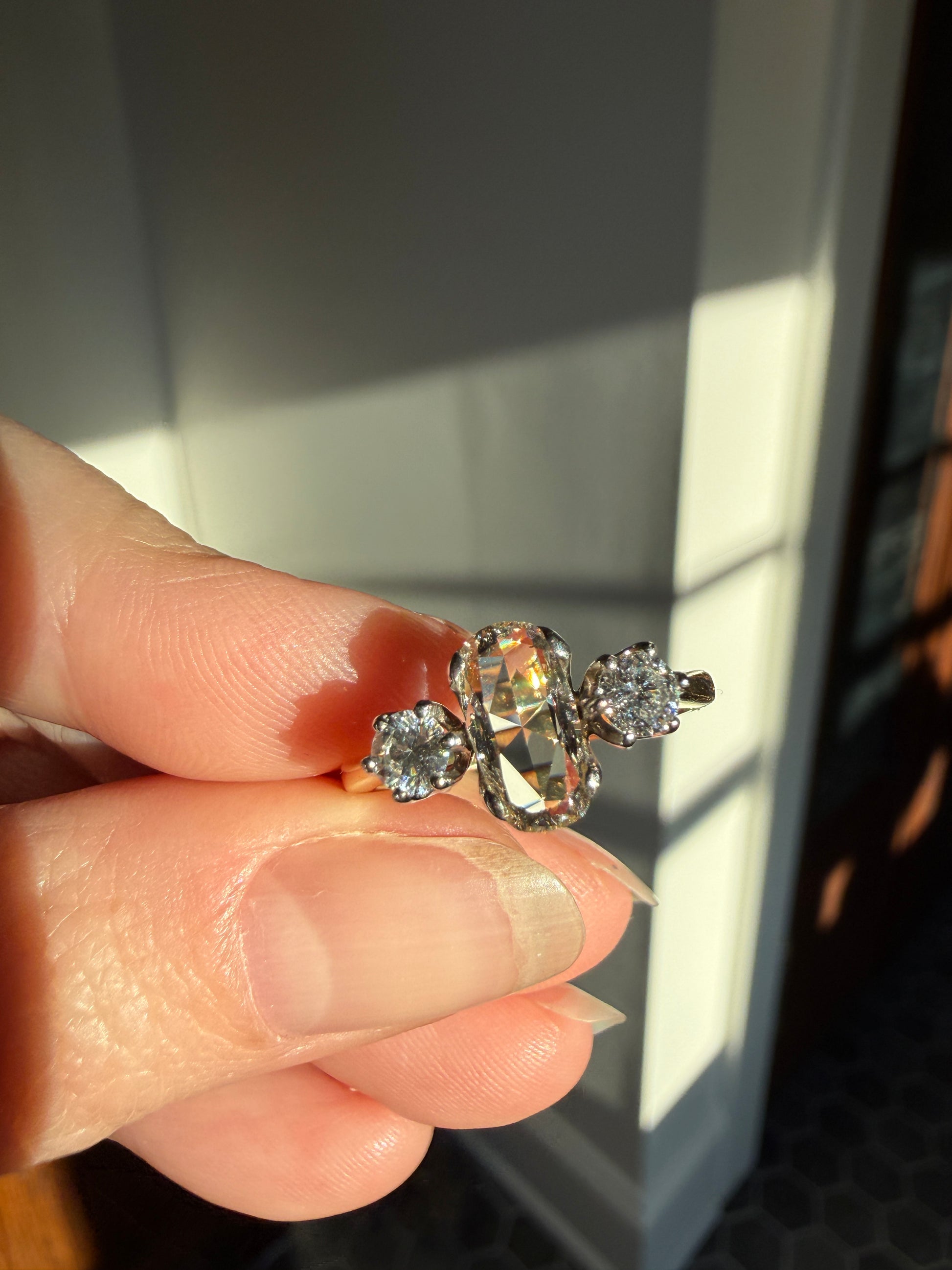 Here's another one that wanted to stay in my personal collection forever but I have a chunky rose cut that I reach for often so I decided to let this one go. Super unique and special though, have not had any like it before, the center stone is fascinating.