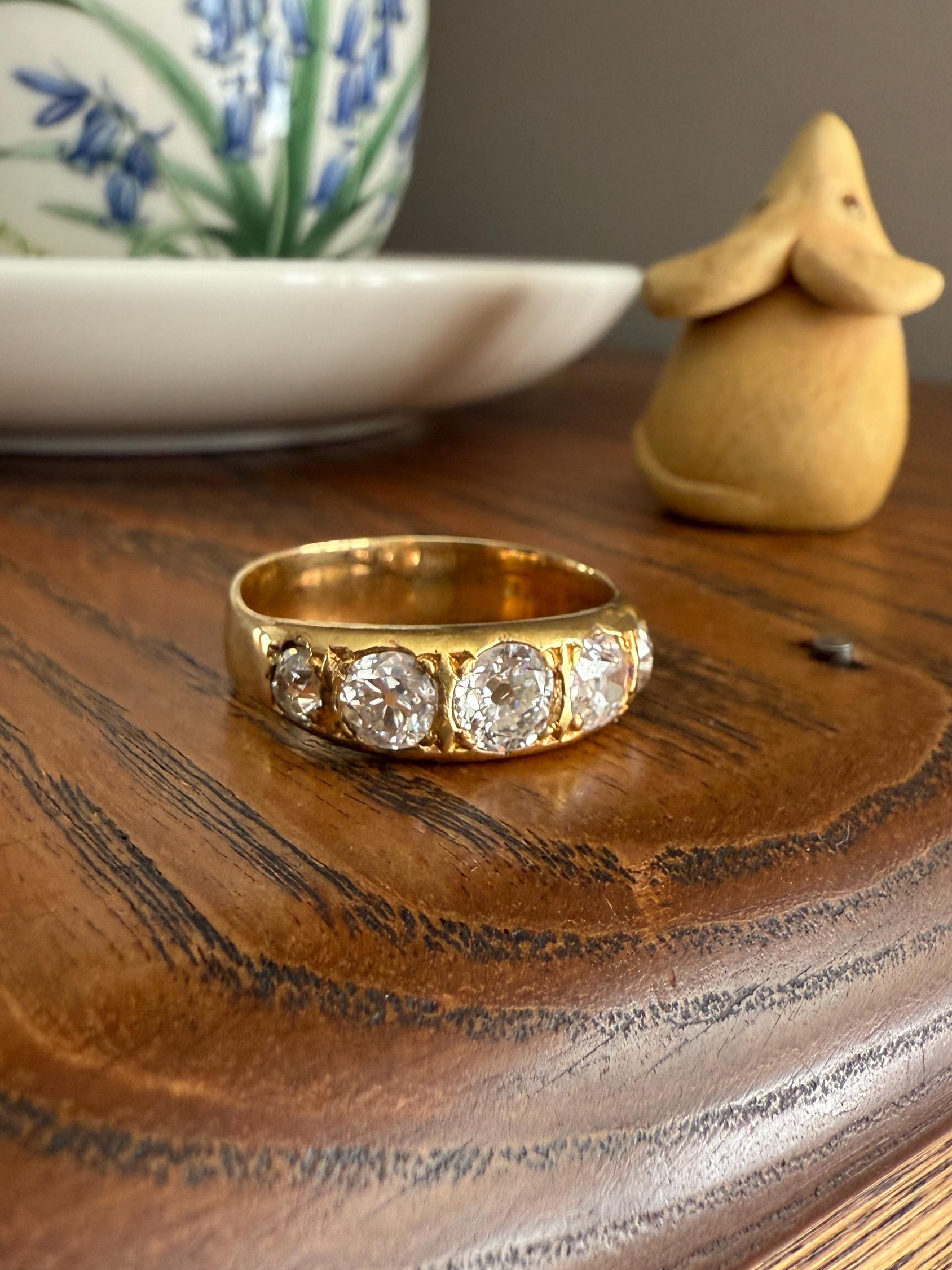 XL 2.5 Carats FIVE Stone Old Mine Cut DIAMOND Gypsy Ring Wide Band 18k Gold Solid Chunky Antique Edwardian Victorian Stacker OmC Man Unisex